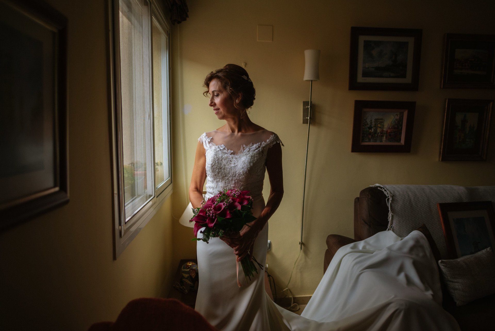 De entrada Charo y Paco son una pareja algo más madura de las que solemos tener como media, pero con un espíritu, un cariño y una dulzura muy especial con todos los presentes y, por supuesto, conmigo, lo cual es muy de agradecer. En principio se planteaba como una boda ultra sencilla; no querían siquiera fotos de los preparativos, pero a última hora pude convencerlos de la importancia de estos momentos en nuestra fotografía a la hora de contar la historia de ese día. Así que un rato antes de salir para el hotel me pasé por su casa para hacer algunas tomas de los preparativos de Charo. Son momentos irrepetibles con sus mejores amigas