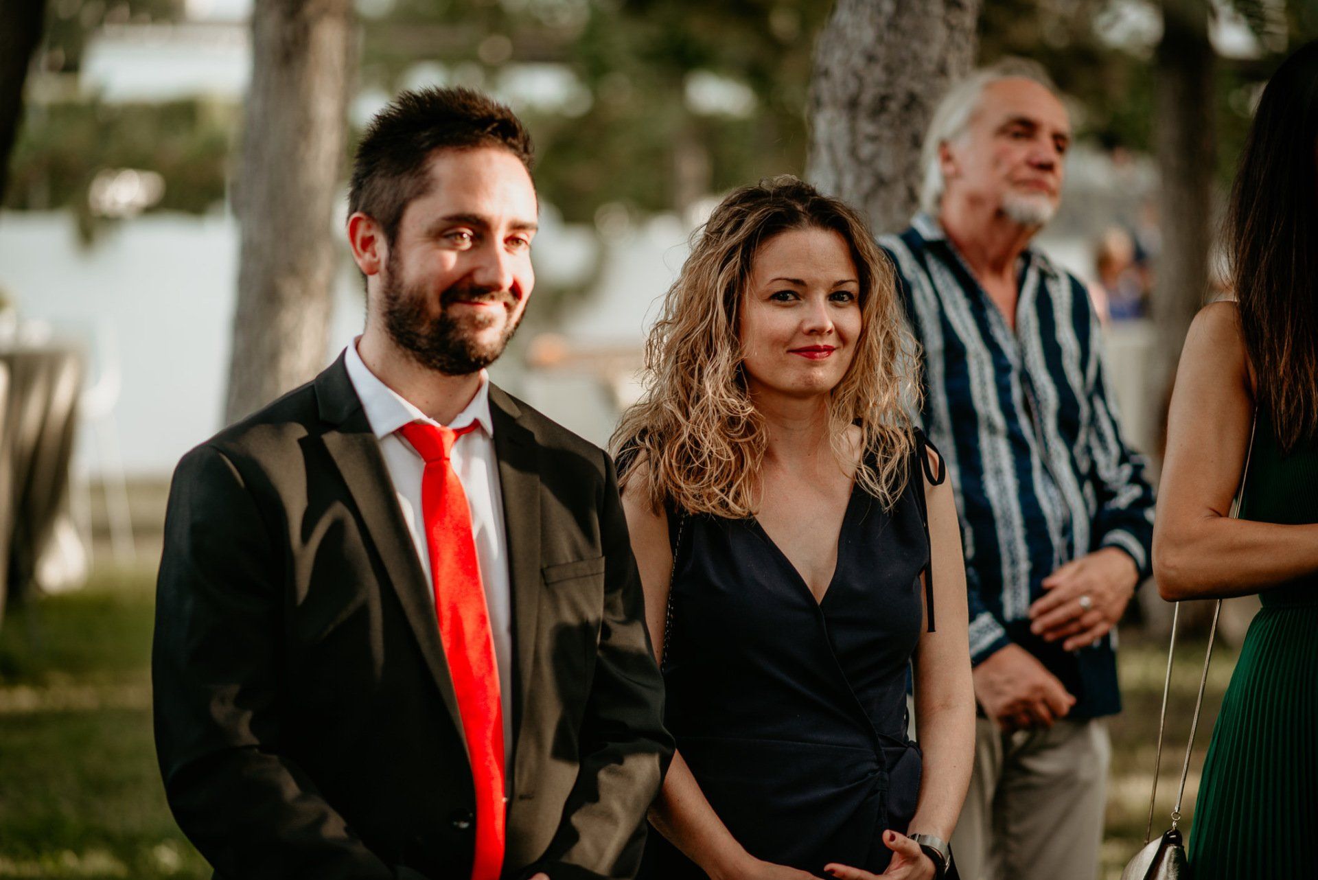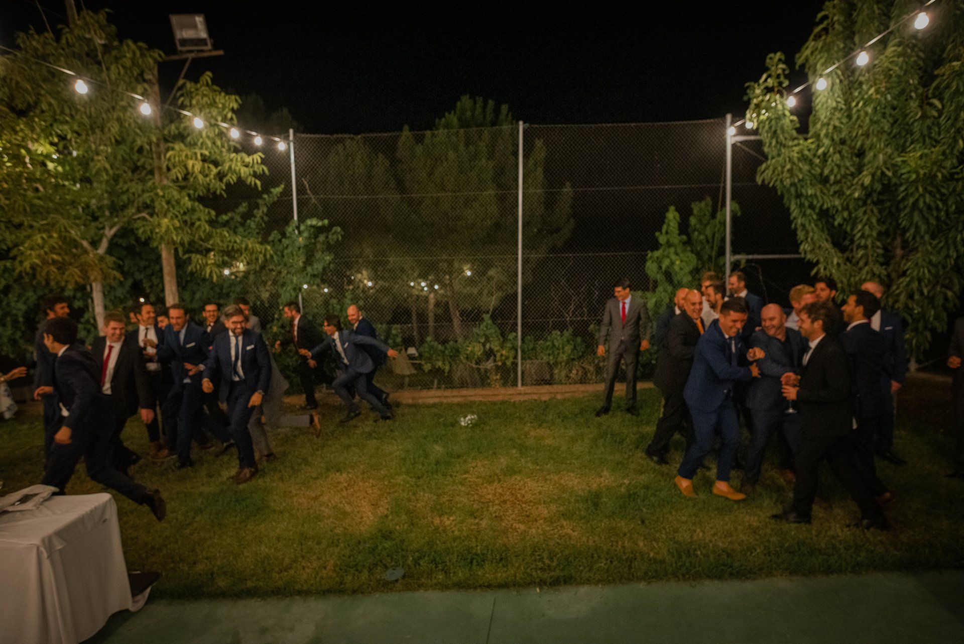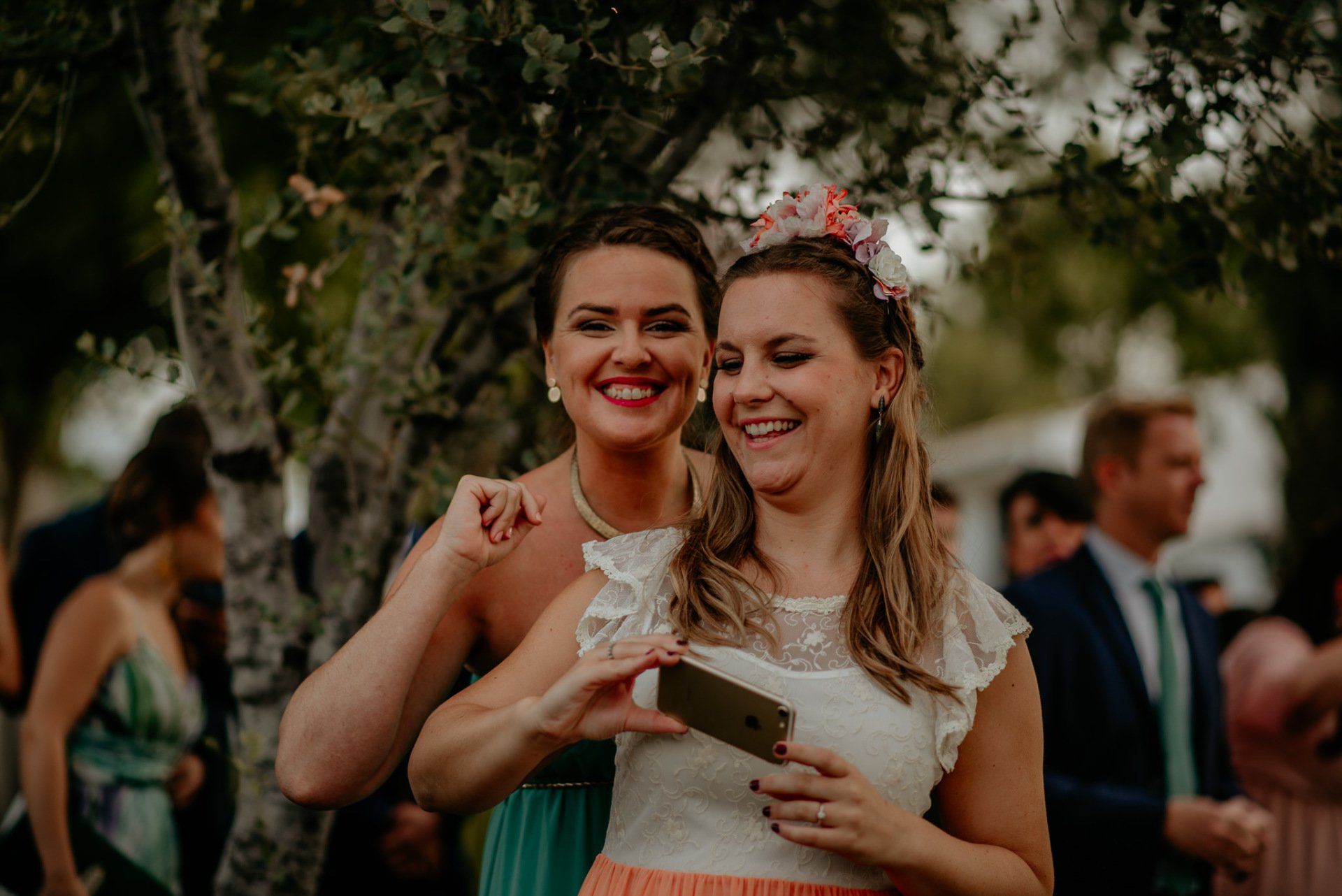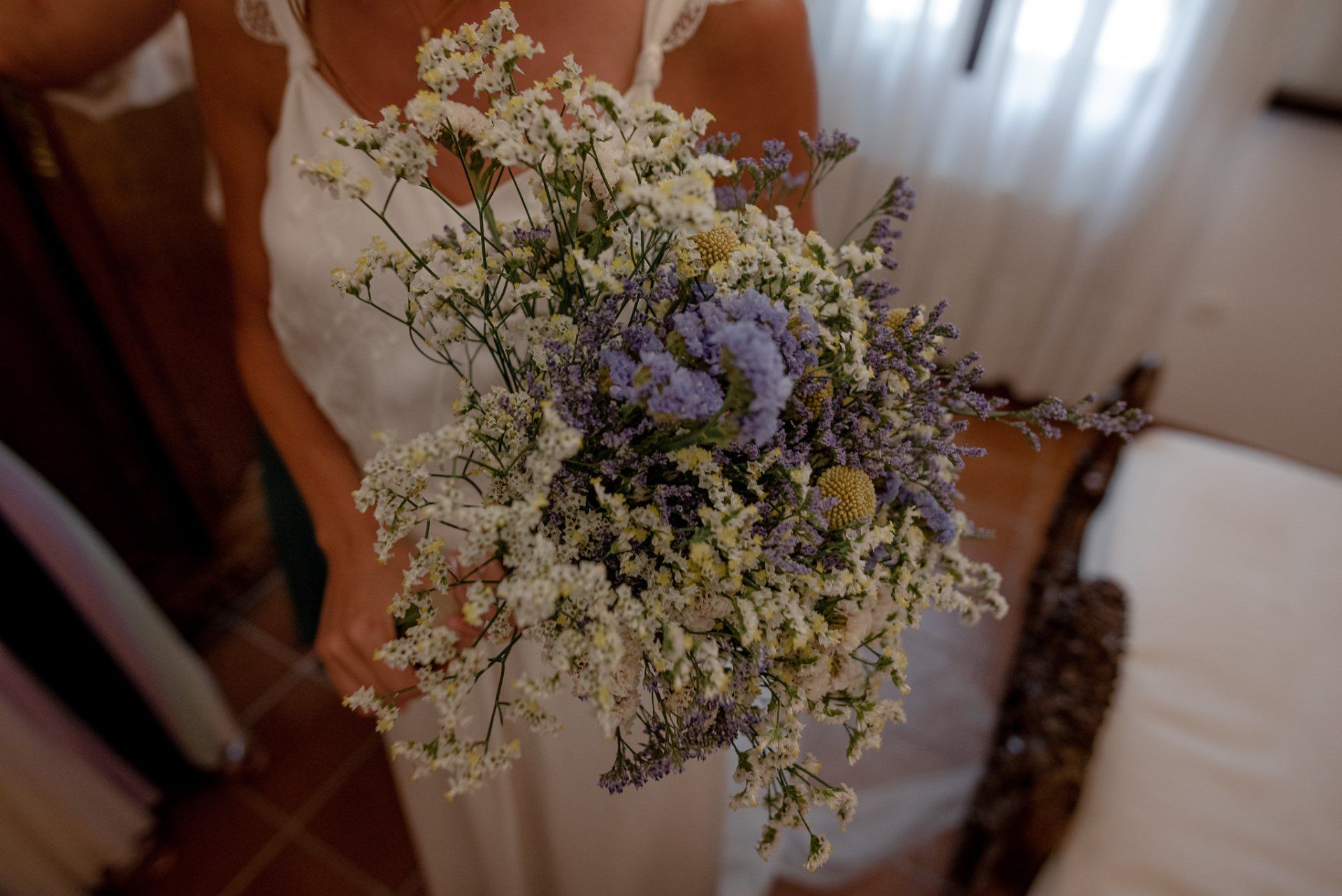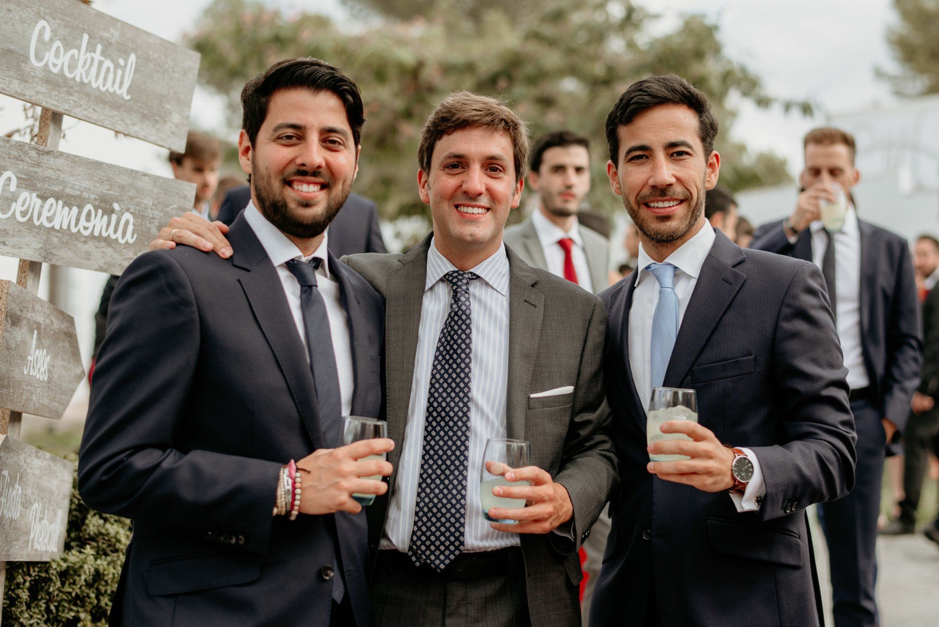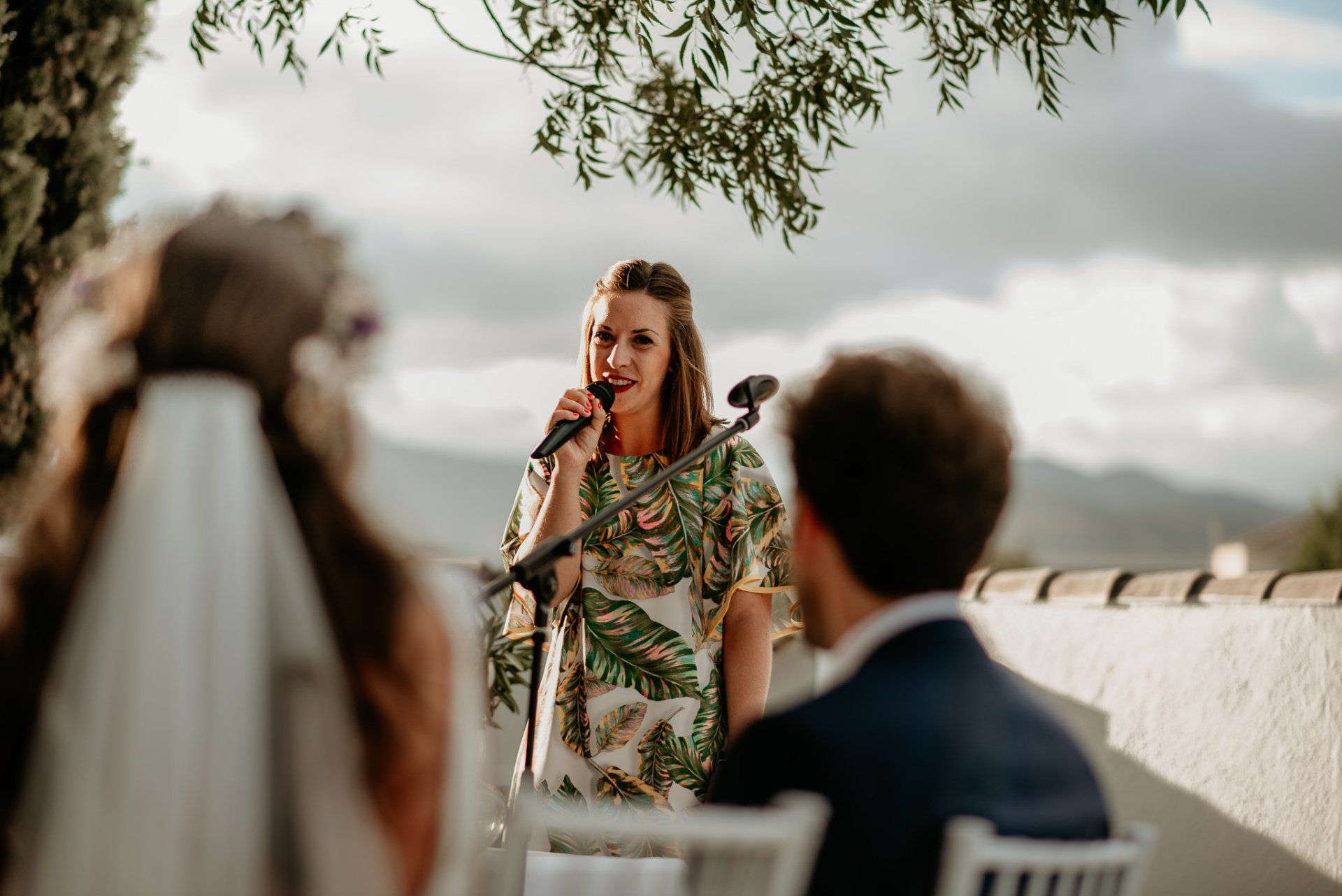 Álex und Elena reisten mit einem großen Gefolge aus Familie und Freunden aus Mallorca an, um ihre Hochzeit in Granada zu feiern. Obwohl ich nicht viel recherchierte, gab mir der Anblick einer asturischen Flagge auf der Schutzfolie des Mobiltelefons von Alex‘ Vater einen Hinweis auf deren Herkunft. Die Hochzeit fand auf der Farm von Elenas Familie in der Stadt Láchar in Granada statt. Ein andalusisches Anwesen mit zwei Hauptgebäuden mit Einfamilienhäusern, einem Waldgebiet, in dem die Zeremonie stattfand, und einem alten Tennisplatz, auf dem der Bankett- und Tanzbereich eingerichtet war. Wir beginnen am Alhambra Palace Hotel, an einem ganz besonderen Ort neben dem berühmtesten Denkmal und mit beneidenswertem Blick auf die Stadt. Elena zog sich auf dem Bauernhof Láchar an, wo sie auf Álex‘ Familie wartete. Die meisten Gäste, die von außerhalb kamen, hauptsächlich aus Mallorca und in der Stadt übernachteten, kamen in zwei Bussen an, die das Anwesen in einem Moment füllten. Die hochemotionale Zeremonie unter den Laubbäumen und geschützt vor Sonne und Hitze Ende Juli war eine Sammlung von Geschichten über das Paar in seinen Anfängen, den Anfängen seiner Beziehung, seinen Erasmus-Erlebnissen, seinen Reisen, seinen Jobs ... erzählt von den Menschen, die sie am besten kennen: Brüder und Abenteuerfreunde. Das spektakuläre Bankett und die Party im Tennisplatzbereich, zwischen den Herausforderungen und Streichen der zahlreichen Freunde. Es war beängstigend, als wir die Mädchen auf der einen und die Jungen auf der anderen Seite zum Fotografieren versammelten ... es konnte alles passieren. Wir waren so viele Stunden dort, dass wir keine Lust mehr hatten, von seiner Seite zu weichen.