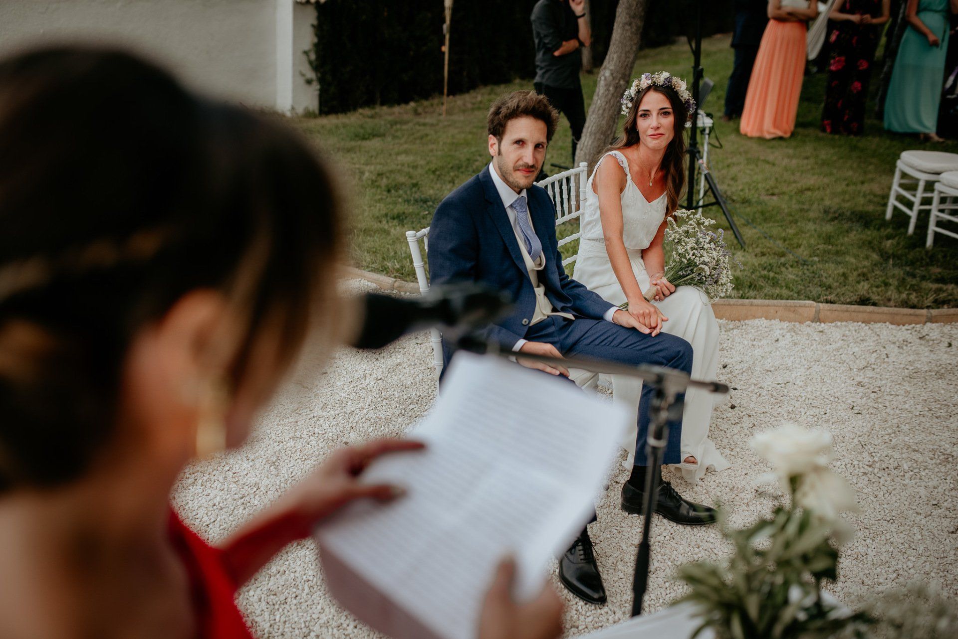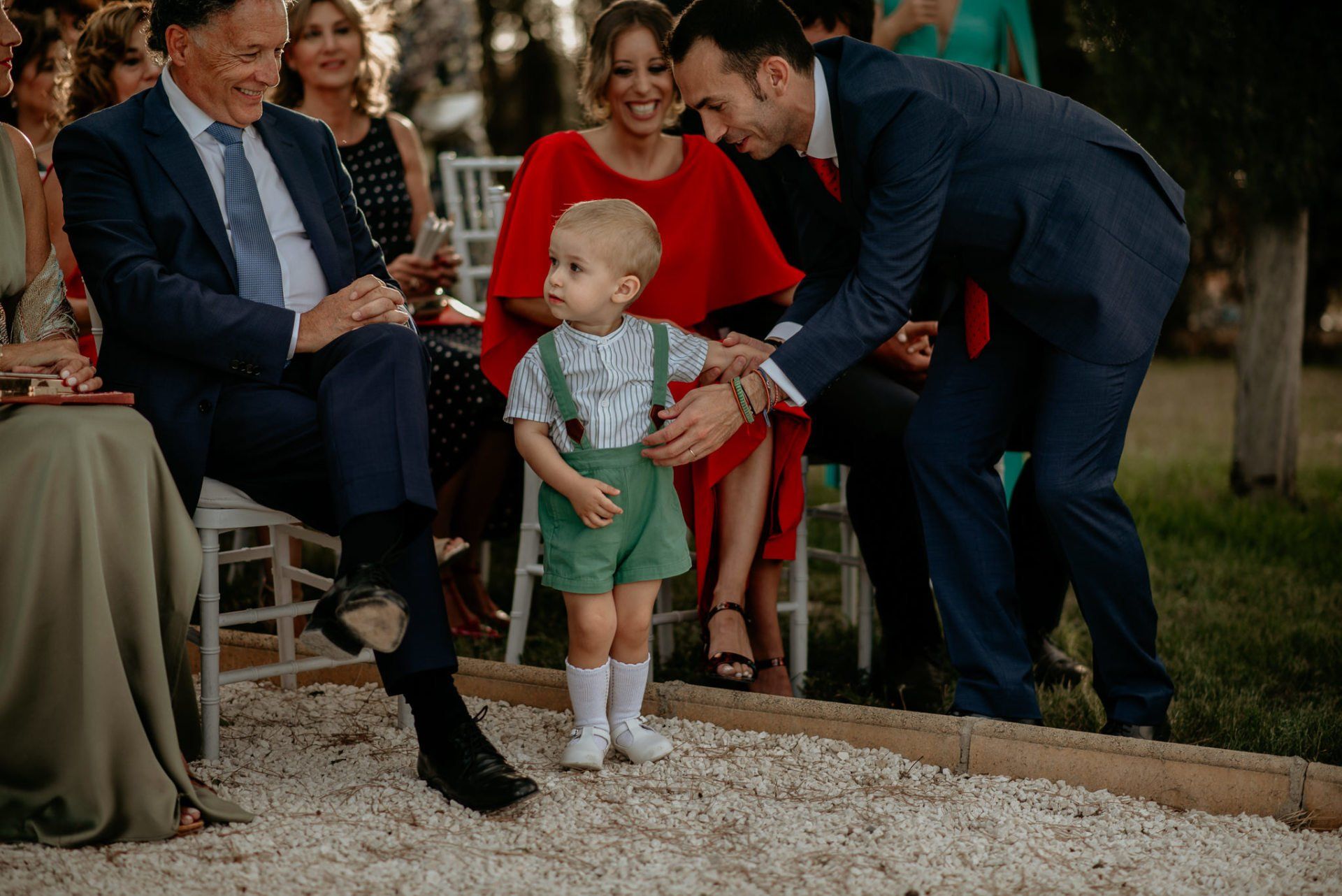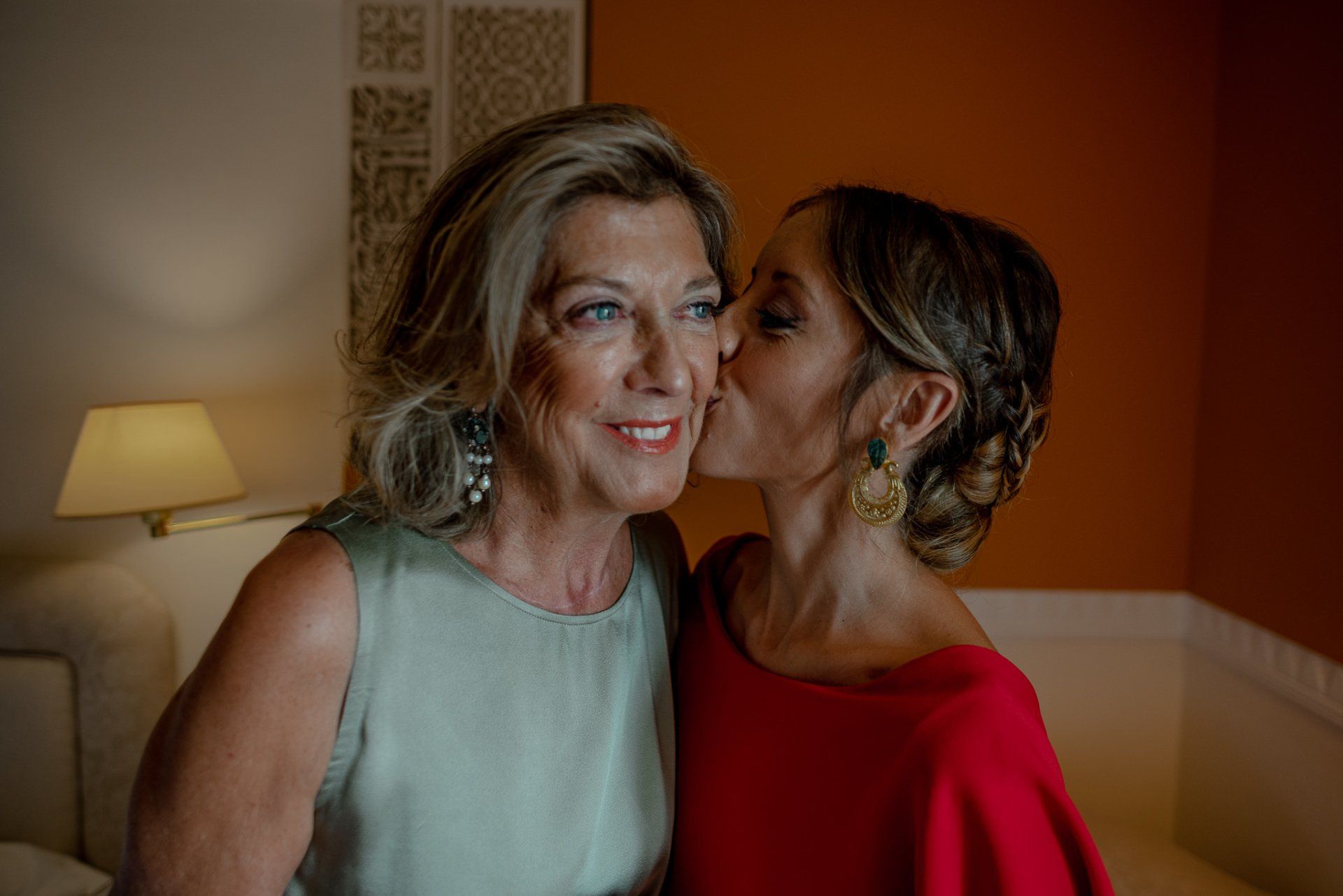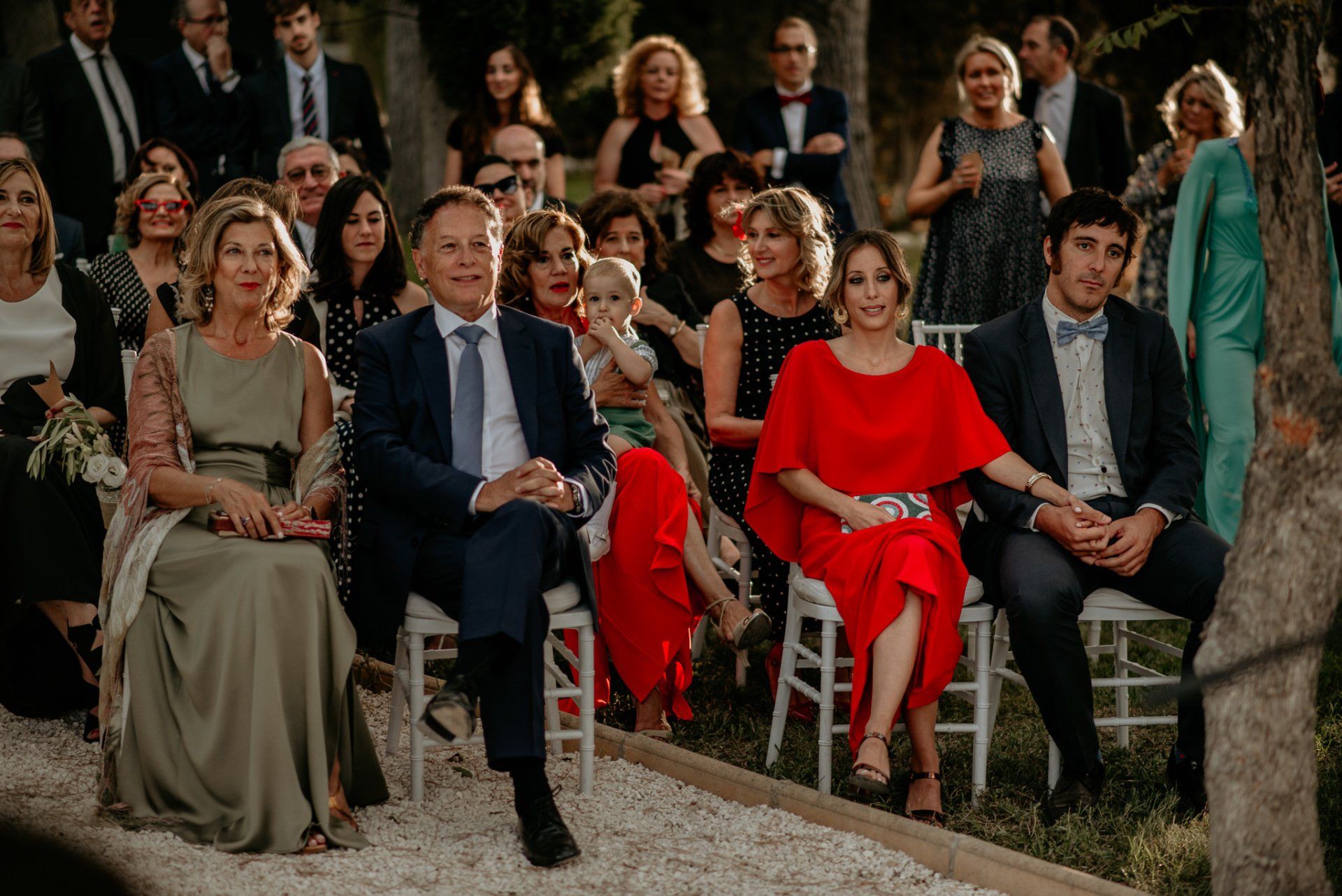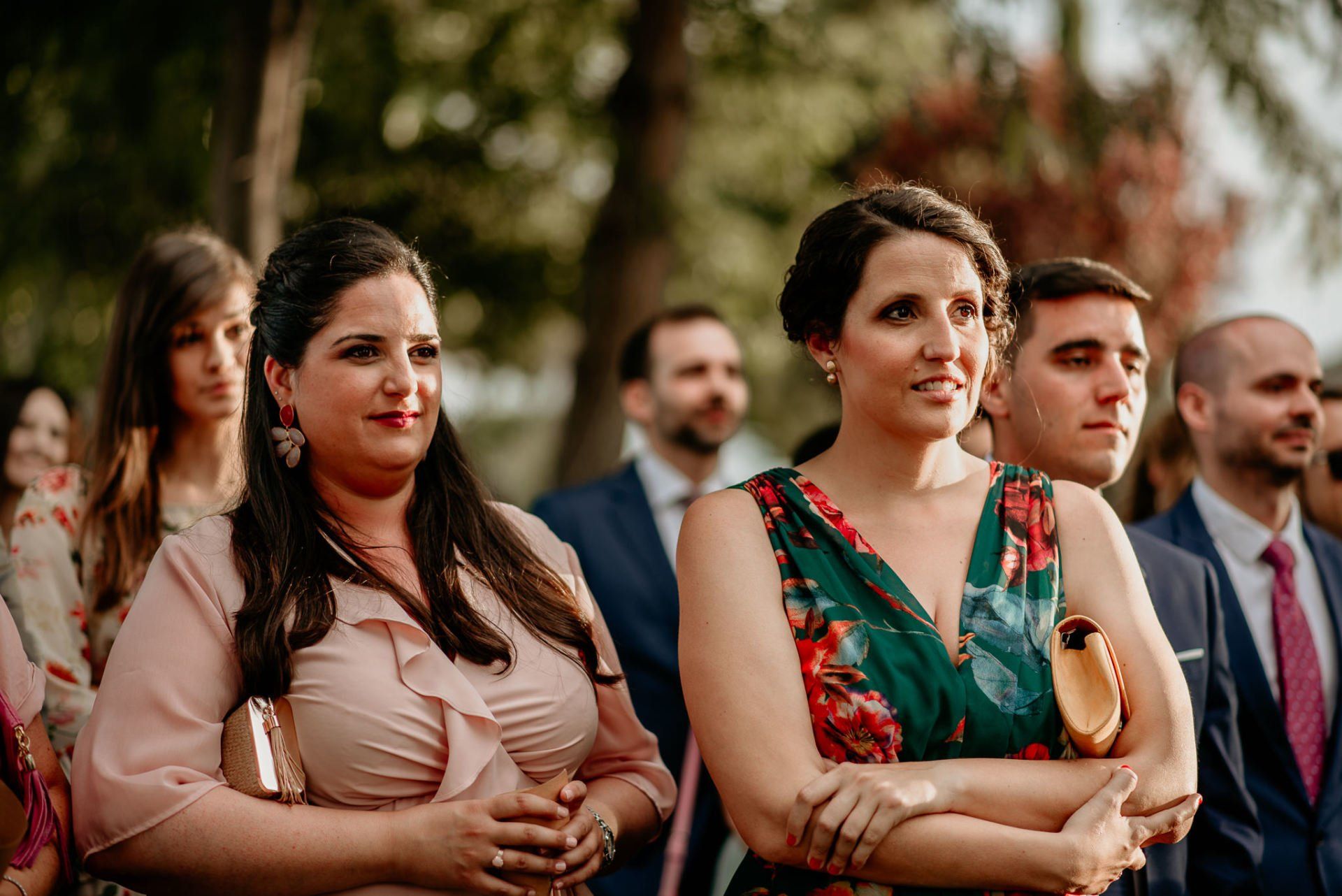 Álex und Elena reisten mit einem großen Gefolge aus Familie und Freunden aus Mallorca an, um ihre Hochzeit in Granada zu feiern. Obwohl ich nicht viel recherchierte, gab mir der Anblick einer asturischen Flagge auf der Schutzfolie des Mobiltelefons von Alex‘ Vater einen Hinweis auf deren Herkunft. Die Hochzeit fand auf der Farm von Elenas Familie in der Stadt Láchar in Granada statt. Ein andalusisches Anwesen mit zwei Hauptgebäuden mit Einfamilienhäusern, einem Waldgebiet, in dem die Zeremonie stattfand, und einem alten Tennisplatz, auf dem der Bankett- und Tanzbereich eingerichtet war. Wir beginnen am Alhambra Palace Hotel, an einem ganz besonderen Ort neben dem berühmtesten Denkmal und mit beneidenswertem Blick auf die Stadt. Elena zog sich auf dem Bauernhof Láchar an, wo sie auf Álex‘ Familie wartete. Die meisten Gäste, die von außerhalb kamen, hauptsächlich aus Mallorca und in der Stadt übernachteten, kamen in zwei Bussen an, die das Anwesen in einem Moment füllten. Die hochemotionale Zeremonie unter den Laubbäumen und geschützt vor Sonne und Hitze Ende Juli war eine Sammlung von Geschichten über das Paar in seinen Anfängen, den Anfängen seiner Beziehung, seinen Erasmus-Erlebnissen, seinen Reisen, seinen Jobs ... erzählt von den Menschen, die sie am besten kennen: Brüder und Abenteuerfreunde. Das spektakuläre Bankett und die Party im Tennisplatzbereich, zwischen den Herausforderungen und Streichen der zahlreichen Freunde. Es war beängstigend, als wir die Mädchen auf der einen und die Jungen auf der anderen Seite zum Fotografieren versammelten ... es konnte alles passieren. Wir waren so viele Stunden dort, dass wir keine Lust mehr hatten, von seiner Seite zu weichen.
