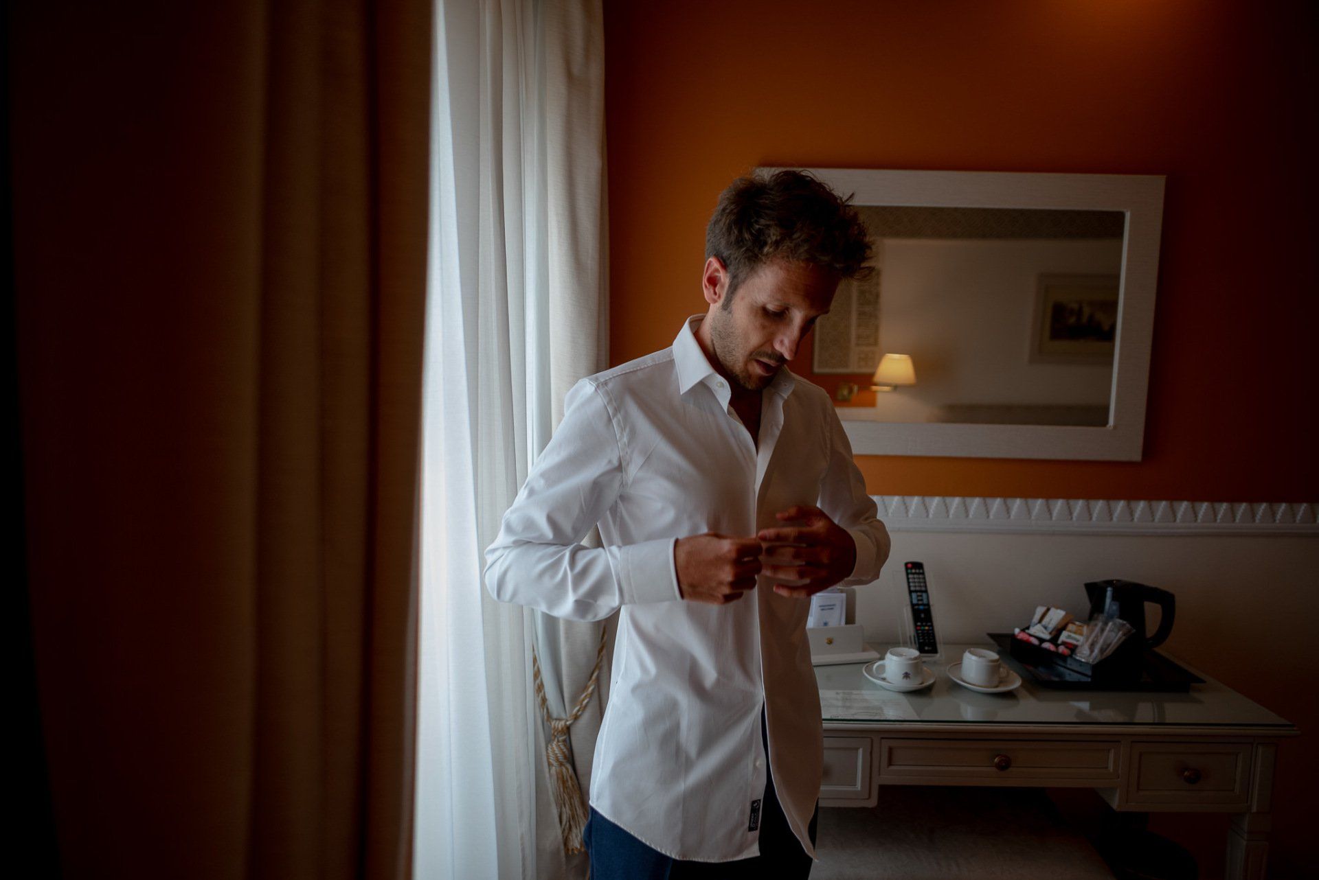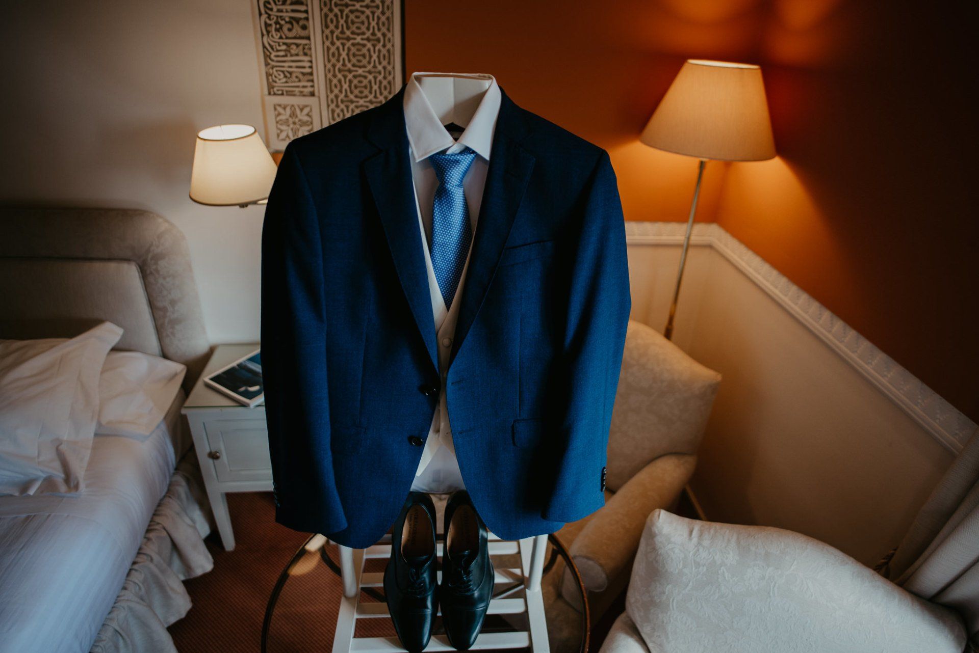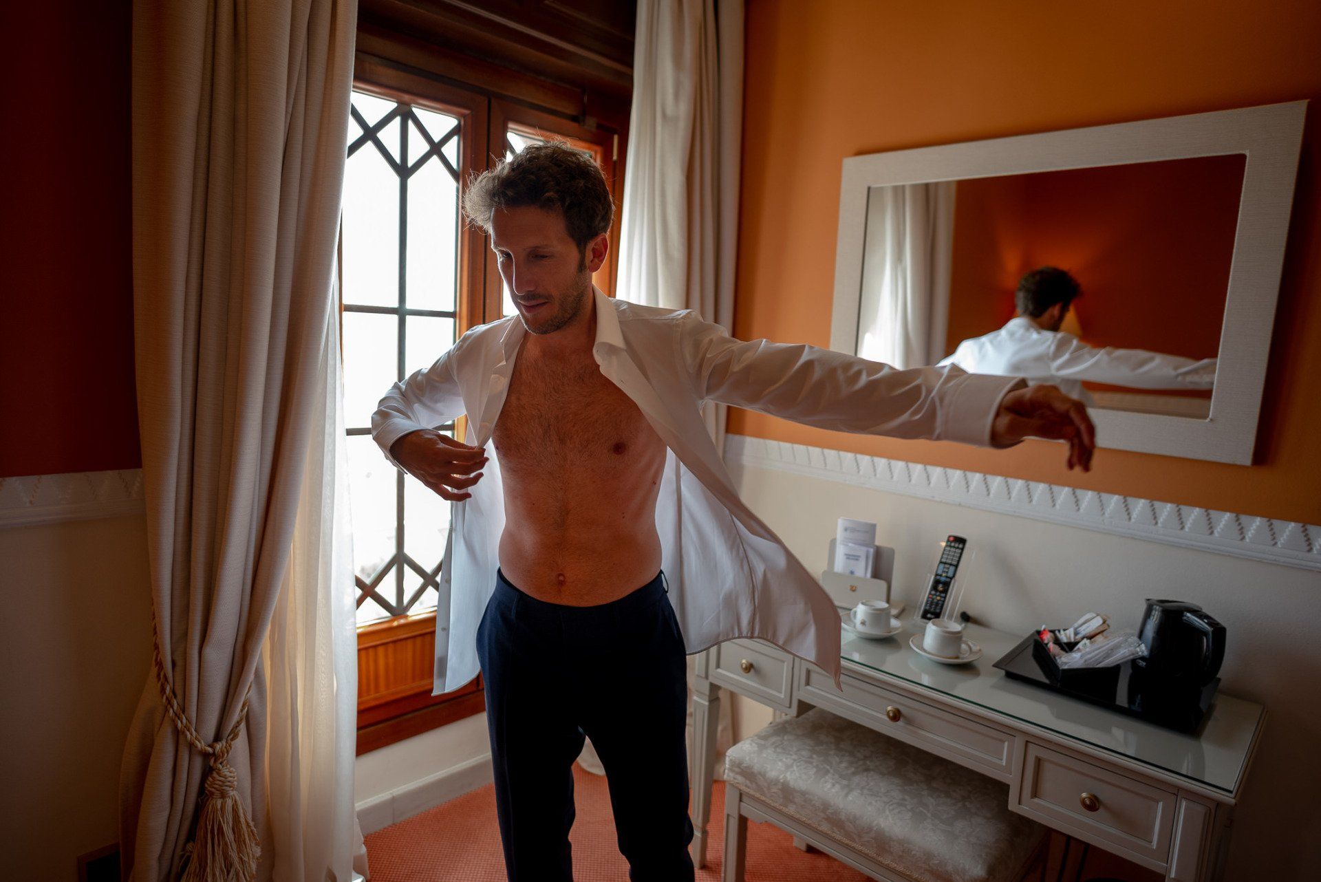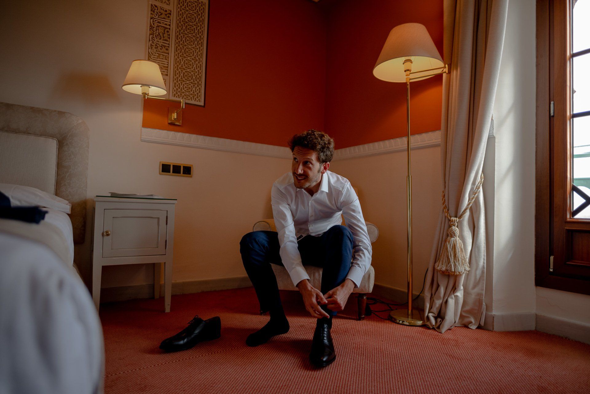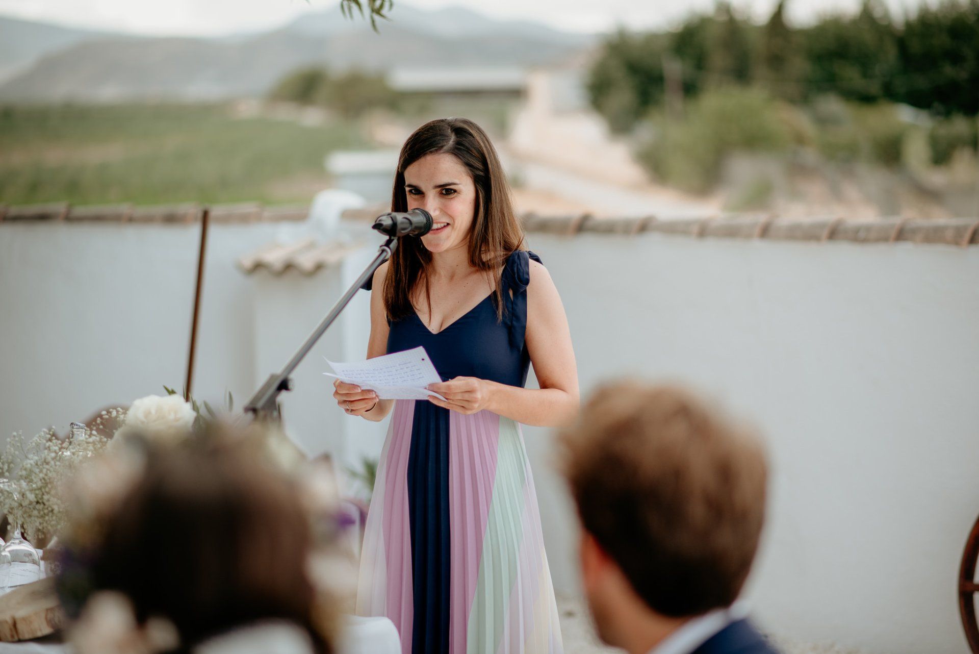 Álex und Elena reisten mit einem großen Gefolge aus Familie und Freunden aus Mallorca an, um ihre Hochzeit in Granada zu feiern. Obwohl ich nicht viel recherchierte, gab mir der Anblick einer asturischen Flagge auf der Schutzfolie des Mobiltelefons von Alex‘ Vater einen Hinweis auf deren Herkunft. Die Hochzeit fand auf der Farm von Elenas Familie in der Stadt Láchar in Granada statt. Ein andalusisches Anwesen mit zwei Hauptgebäuden mit Einfamilienhäusern, einem Waldgebiet, in dem die Zeremonie stattfand, und einem alten Tennisplatz, auf dem der Bankett- und Tanzbereich eingerichtet war. Wir beginnen am Alhambra Palace Hotel, an einem ganz besonderen Ort neben dem berühmtesten Denkmal und mit beneidenswertem Blick auf die Stadt. Elena zog sich auf dem Bauernhof Láchar an, wo sie auf Álex‘ Familie wartete. Die meisten Gäste, die von außerhalb kamen, hauptsächlich aus Mallorca und in der Stadt übernachteten, kamen in zwei Bussen an, die das Anwesen in einem Moment füllten. Die hochemotionale Zeremonie unter den Laubbäumen und geschützt vor Sonne und Hitze Ende Juli war eine Sammlung von Geschichten über das Paar in seinen Anfängen, den Anfängen seiner Beziehung, seinen Erasmus-Erlebnissen, seinen Reisen, seinen Jobs ... erzählt von den Menschen, die sie am besten kennen: Brüder und Abenteuerfreunde. Das spektakuläre Bankett und die Party im Tennisplatzbereich, zwischen den Herausforderungen und Streichen der zahlreichen Freunde. Es war beängstigend, als wir die Mädchen auf der einen und die Jungen auf der anderen Seite zum Fotografieren versammelten ... es konnte alles passieren. Wir waren so viele Stunden dort, dass wir keine Lust mehr hatten, von seiner Seite zu weichen.