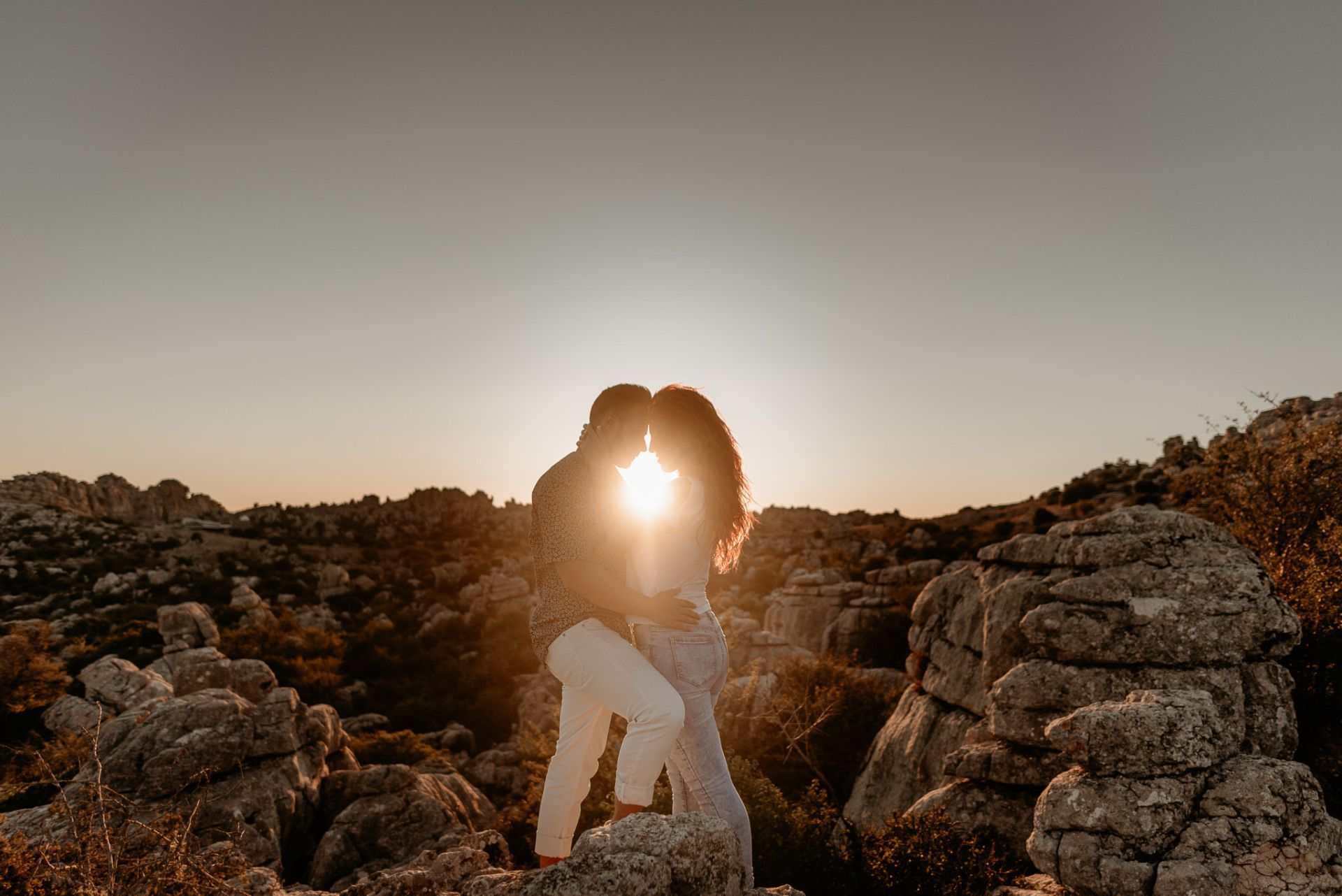Für Natalia und Alberto haben wir einen idyllischen Ort für eine Liebessession oder Pre-Wedding-Session in Malaga ausgewählt, wo wir einen mehr als unglaublichen Sonnenuntergang genießen konnten. Und ein Treffen vor der Hochzeit in El Torcal de Antequera ist immer ein Erfolgsgarant. Ein wunderschönes Paar, das seine Liebe zum Ausdruck bringt, ohne sich um irgendetwas in der Welt um es herum zu kümmern, und ein magischer Ort wie dieser lassen Sie als Hochzeitsfotograf in Malaga in vollen Zügen genießen.
