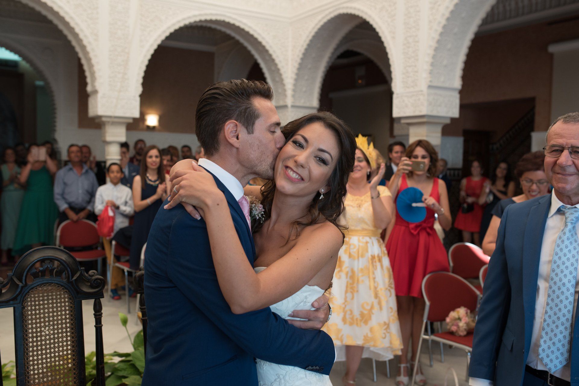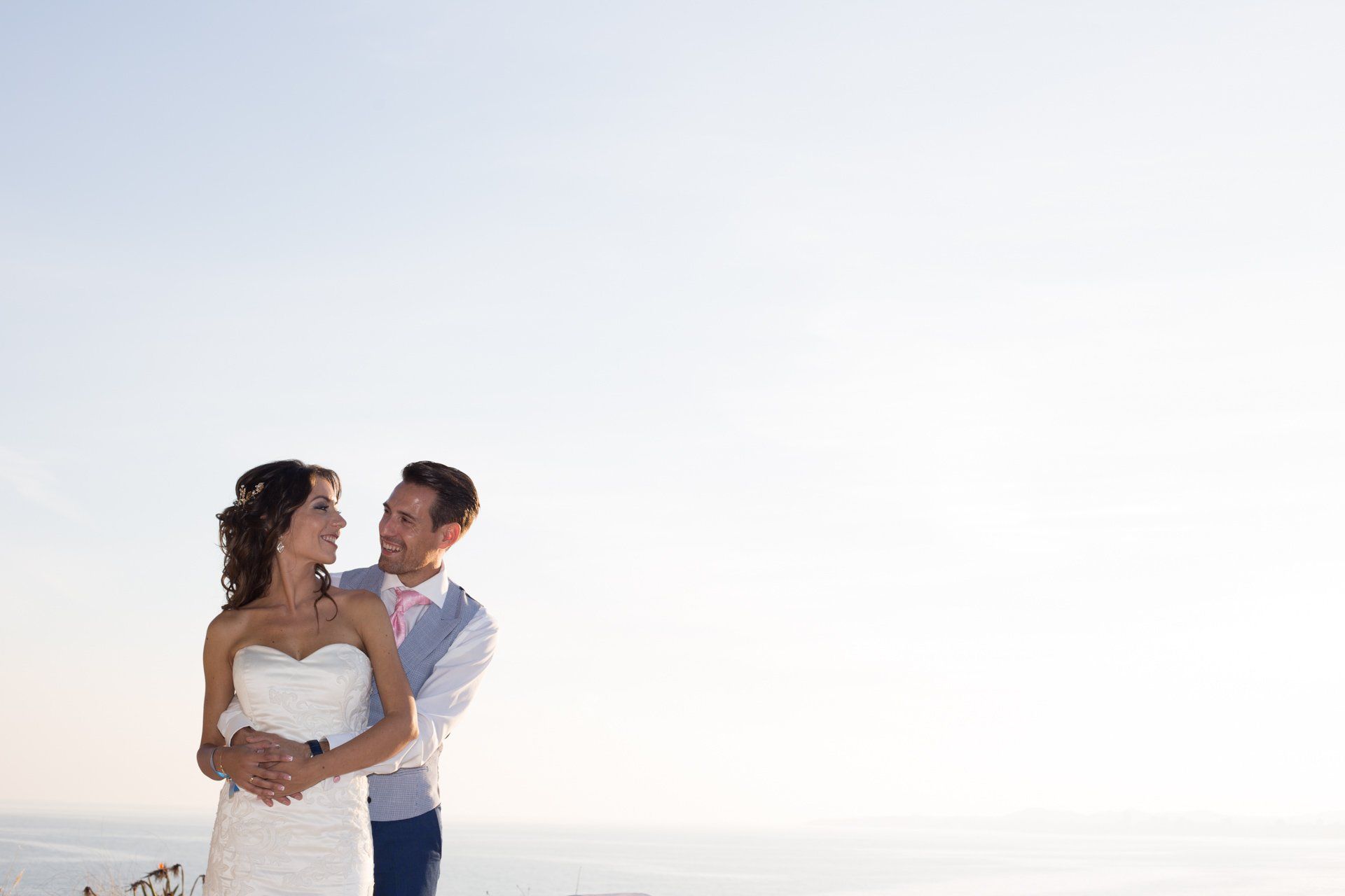 Ein junges und lächelndes Paar aus Malaga, das beschlossen hat, dass ich der Fotograf für ihre Hochzeit und die Vorhochzeit (die Sie hier sehen können) sein würde. Sie haben im Schloss BilBil geheiratet und die Feier fand im Restaurant BLANKKO in Benalmádena statt. Bei einer sehr mediterranen Hochzeit ist alles auf das Meer ausgerichtet. Bei der Zeremonie hatten wir den Überraschungsauftritt der Málaga-Gruppe DMEI.