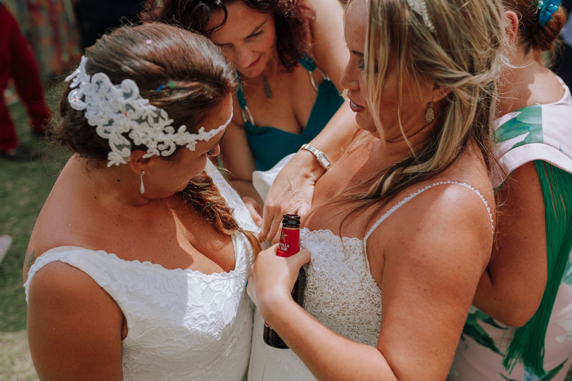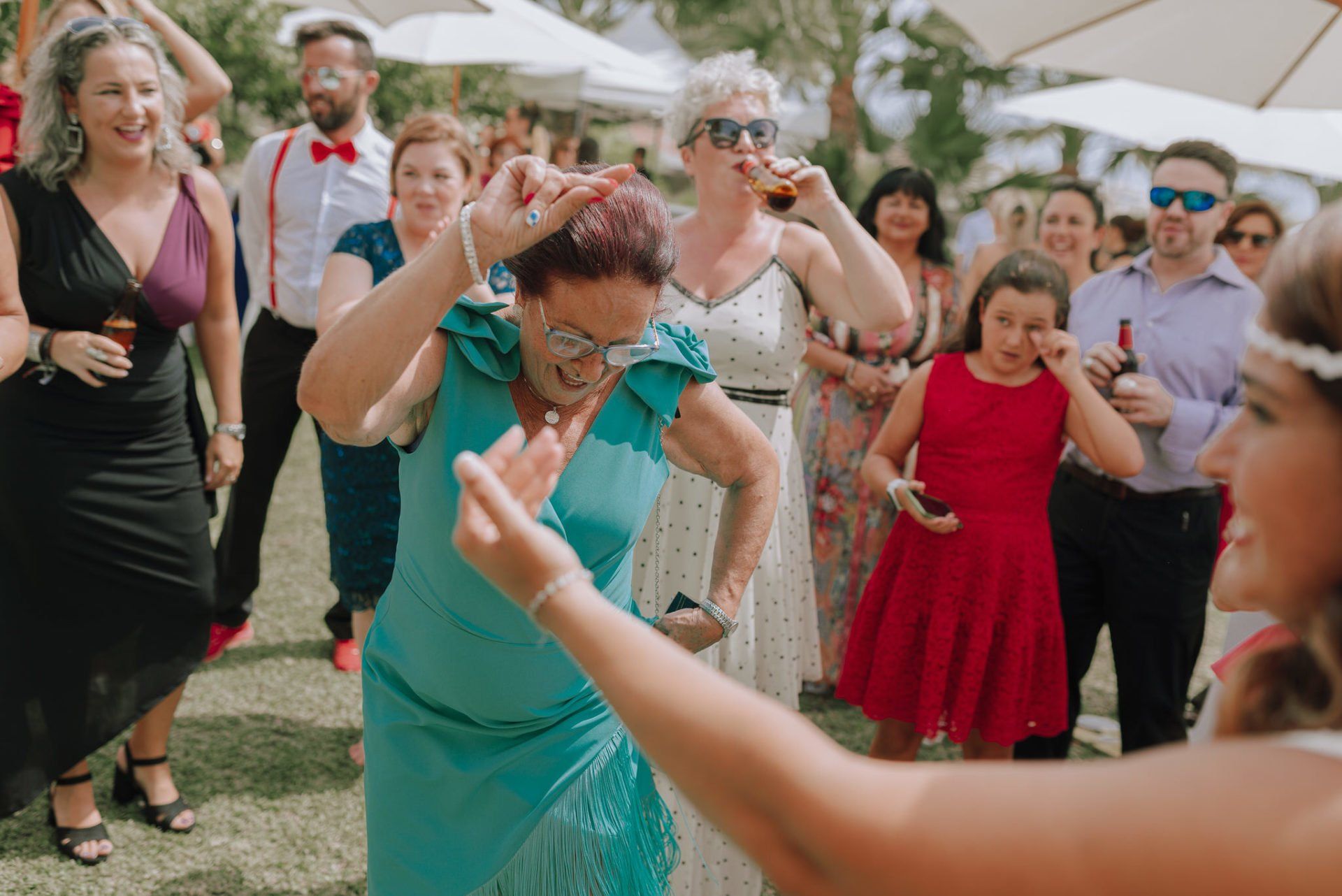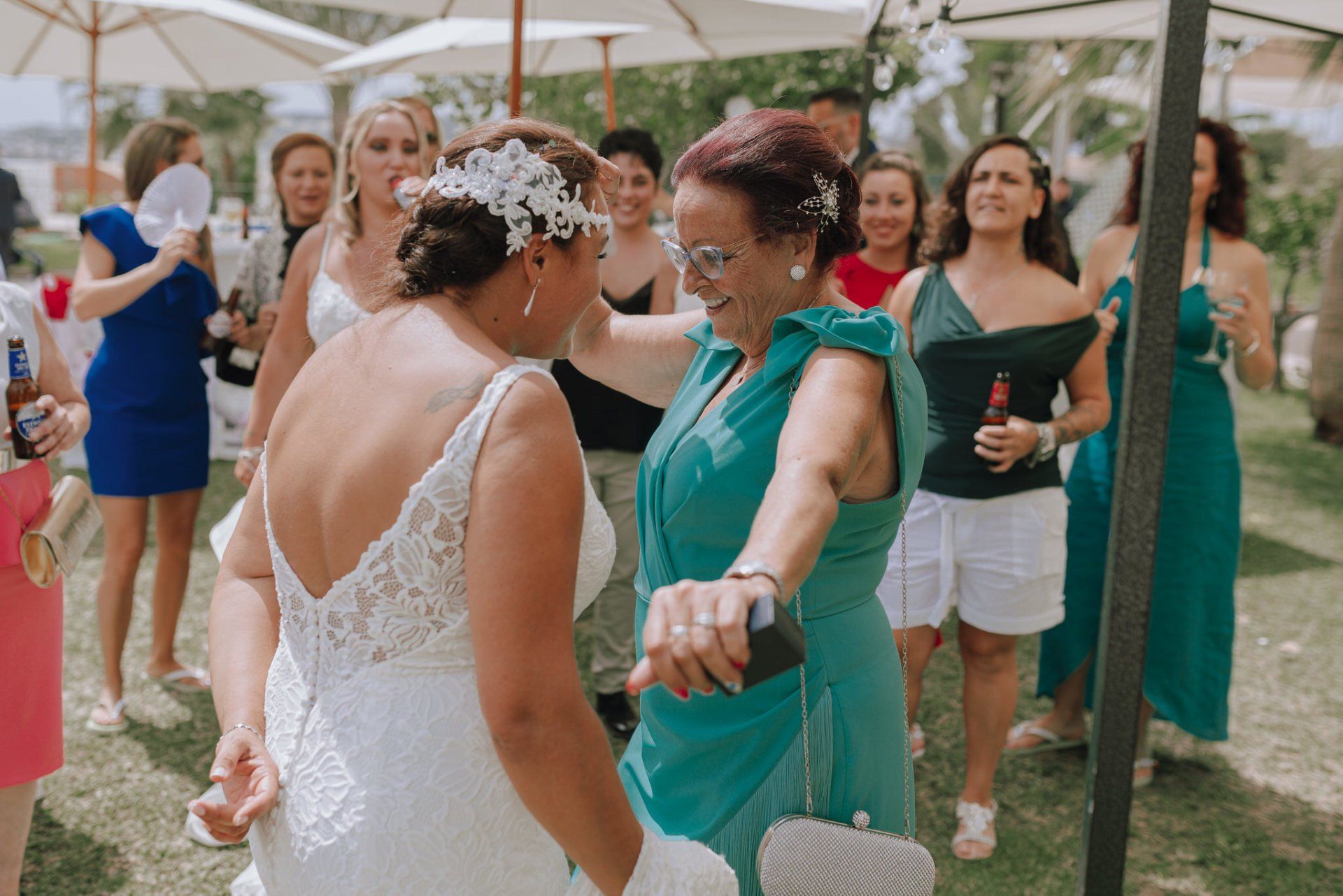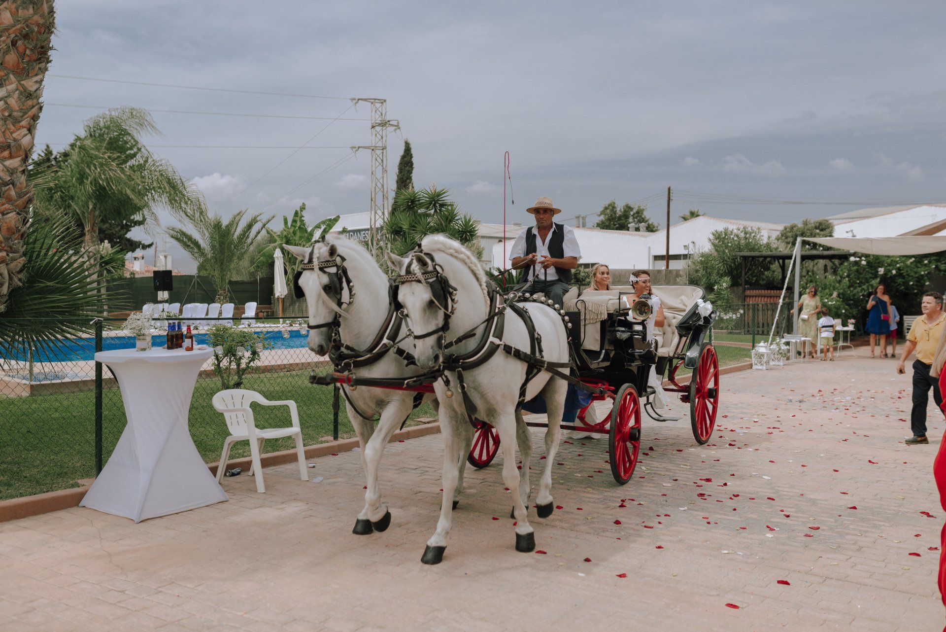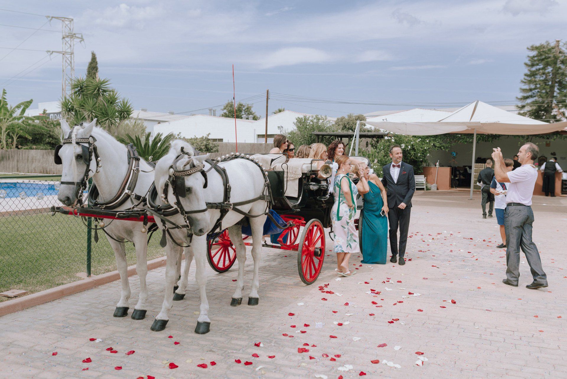 Diese Mädchen, verrückt wie sie selbst, waren so freundlich, mich an einer beispiellosen Party teilnehmen zu lassen: ihrer Hochzeit. Die dort versammelte Gruppe zeichnete sich durch ihre Lebensfreude und den Zusammenhalt aller aus. Eine informelle Hochzeit, bei der es so unterschiedliche Momente gab wie die Ankunft von Almu mit der Pferdekutsche, viel Musik, Cadiz-Airs mit der Truppe „er Pichi de Cai“, Saxophonist, ... einige Tränen bei der Zeremonie und viele Gelächter, besonders auf der Party, viel Tanzen und viele verrückte Leute... einige haben sogar den Pool mit Kleidung und allem ausprobiert... suchen Sie nach Bildern, die nicht verschwendet werden.