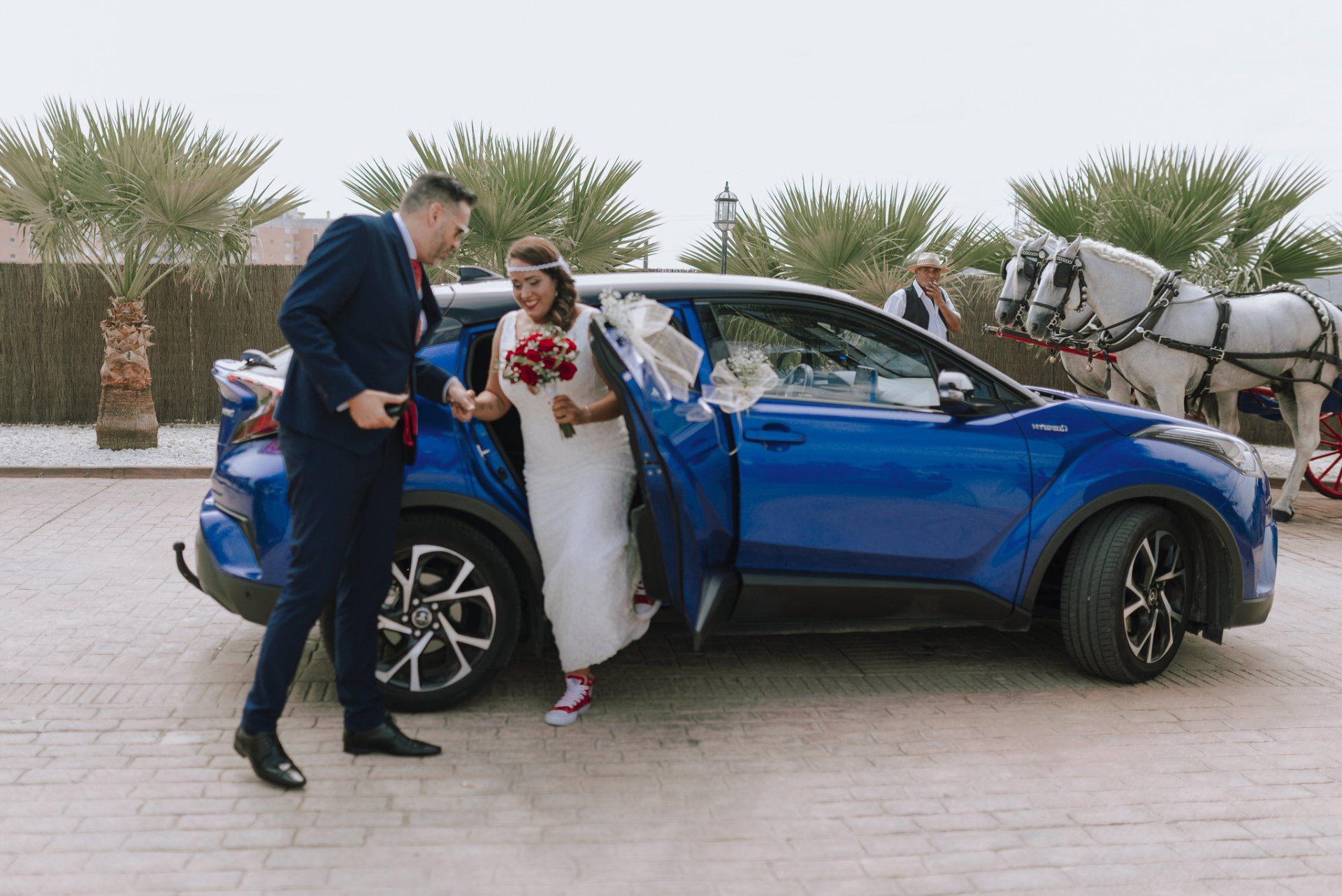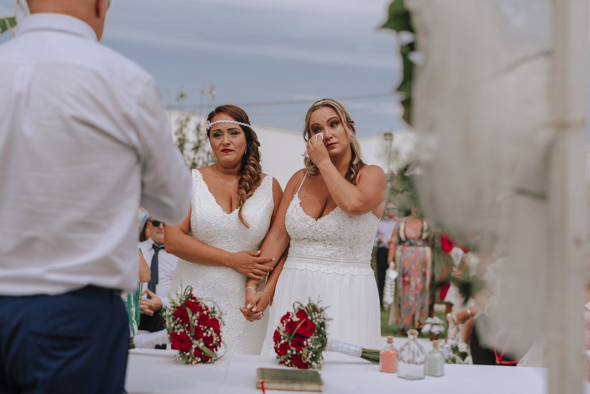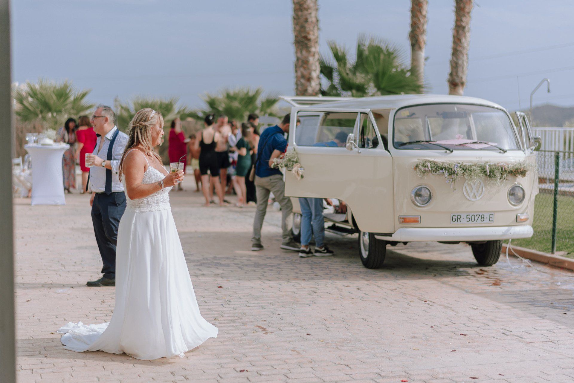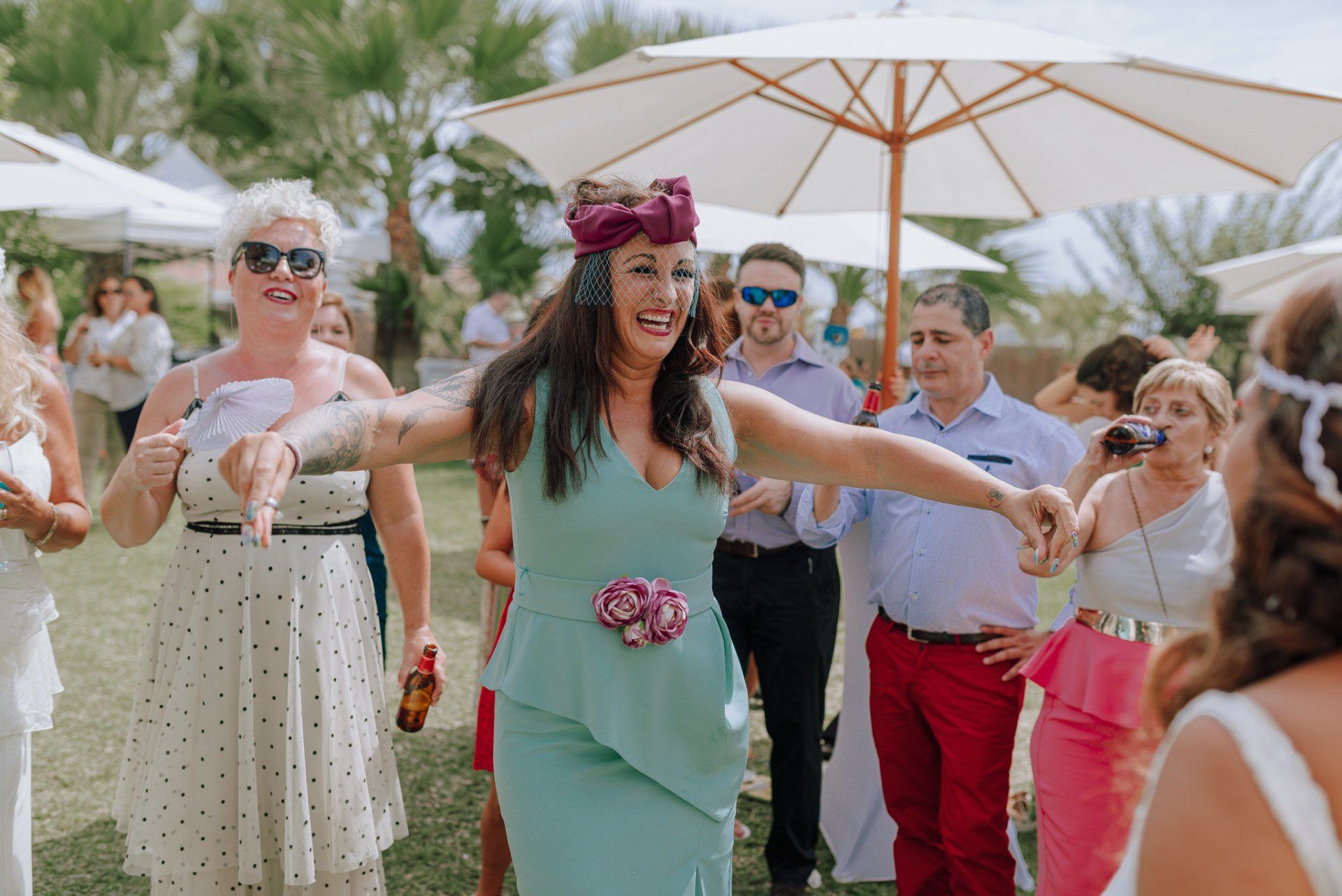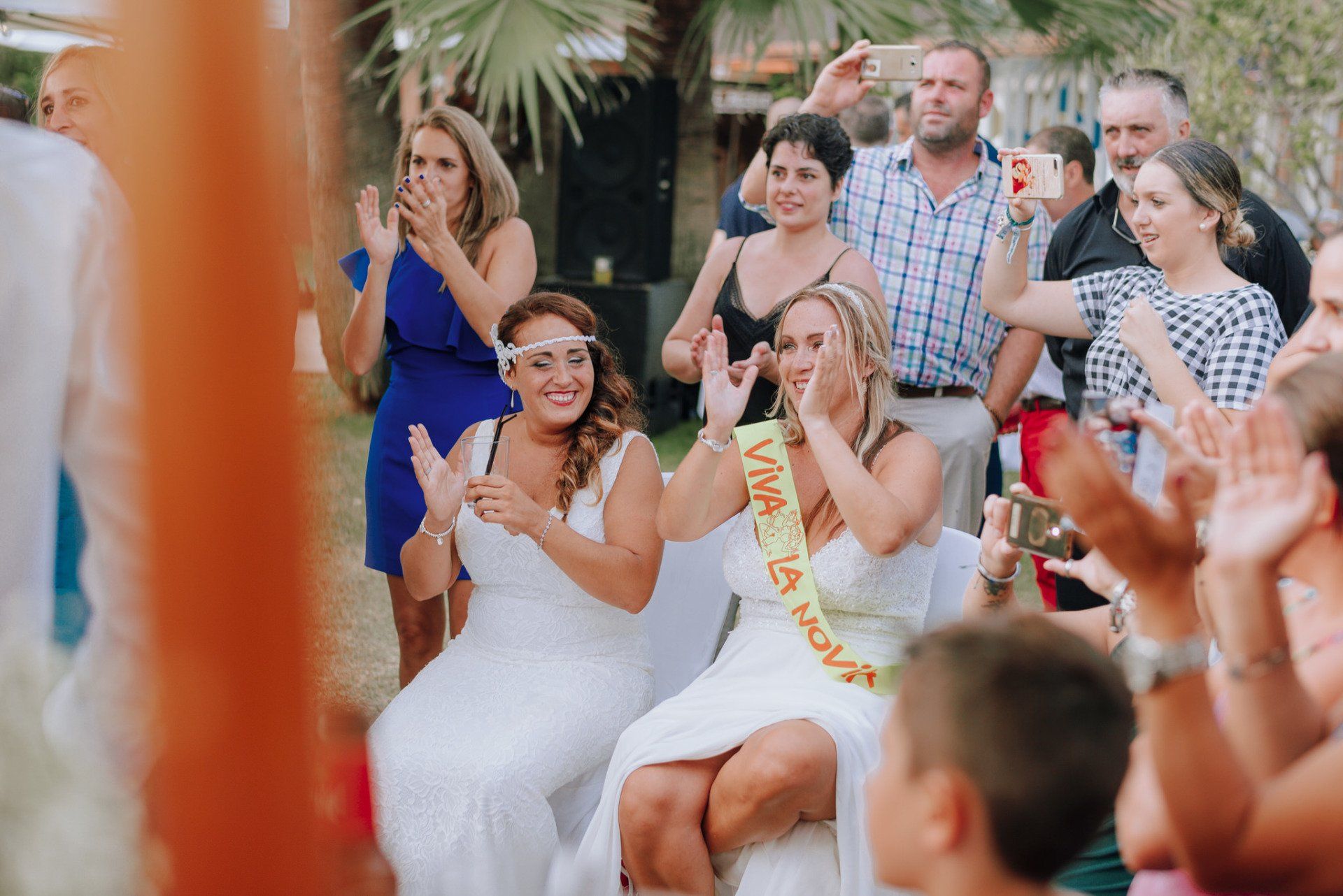 Diese Mädchen, verrückt wie sie selbst, waren so freundlich, mich an einer beispiellosen Party teilnehmen zu lassen: ihrer Hochzeit. Die dort versammelte Gruppe zeichnete sich durch ihre Lebensfreude und den Zusammenhalt aller aus. Eine informelle Hochzeit, bei der es so unterschiedliche Momente gab wie die Ankunft von Almu mit der Pferdekutsche, viel Musik, Cadiz-Airs mit der Truppe „er Pichi de Cai“, Saxophonist, ... einige Tränen bei der Zeremonie und viele Gelächter, besonders auf der Party, viel Tanzen und viele verrückte Leute... einige haben sogar den Pool mit Kleidung und allem ausprobiert... suchen Sie nach Bildern, die nicht verschwendet werden.