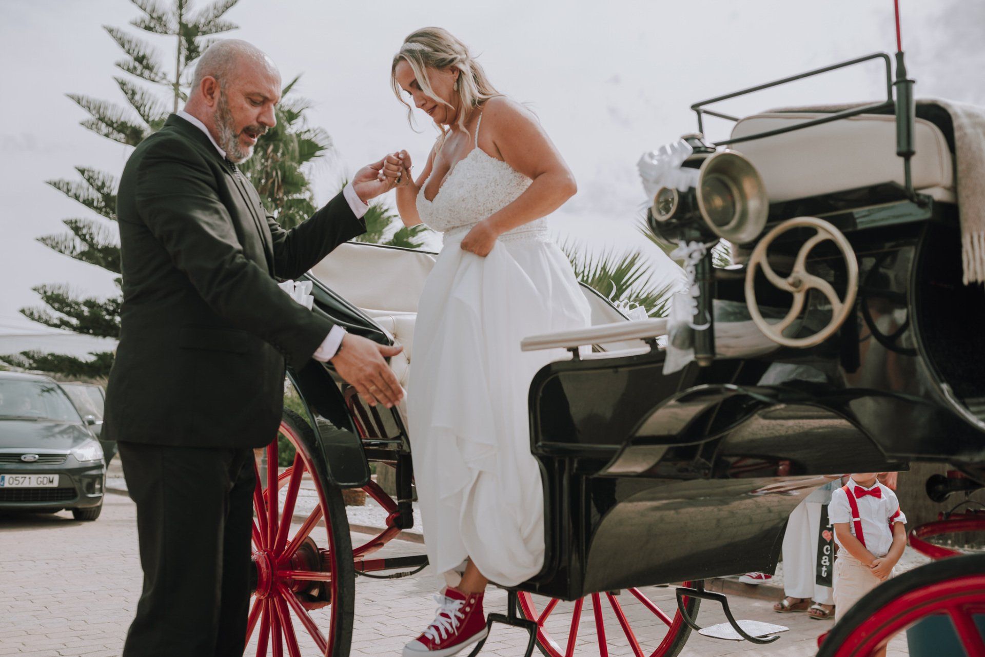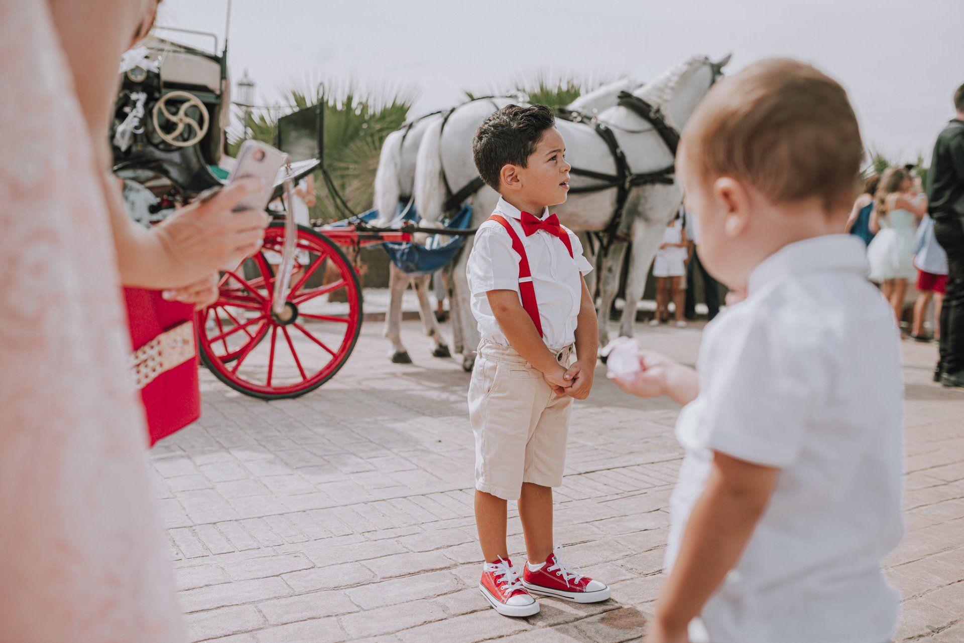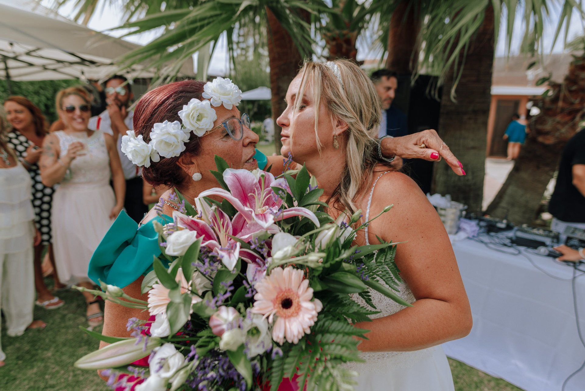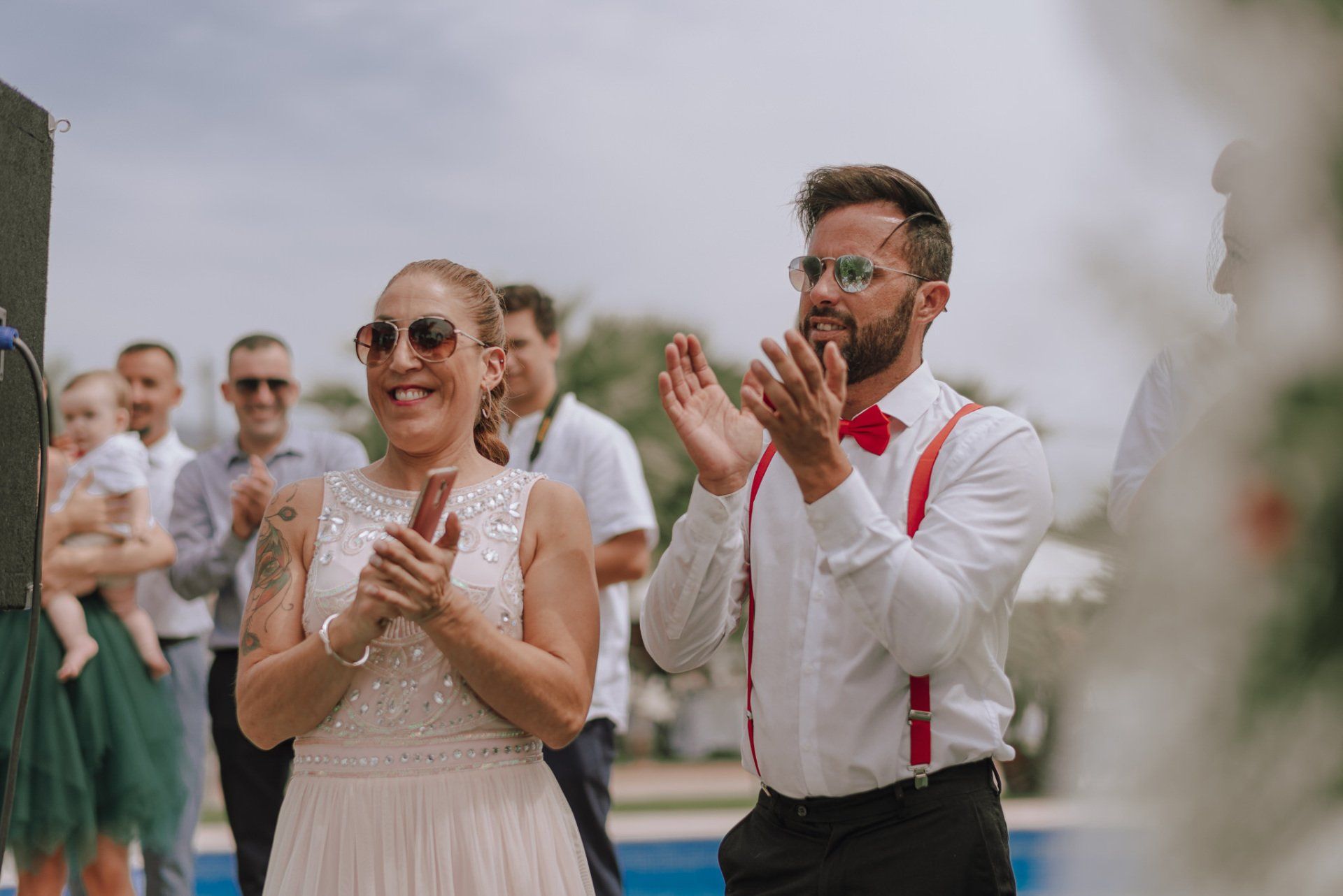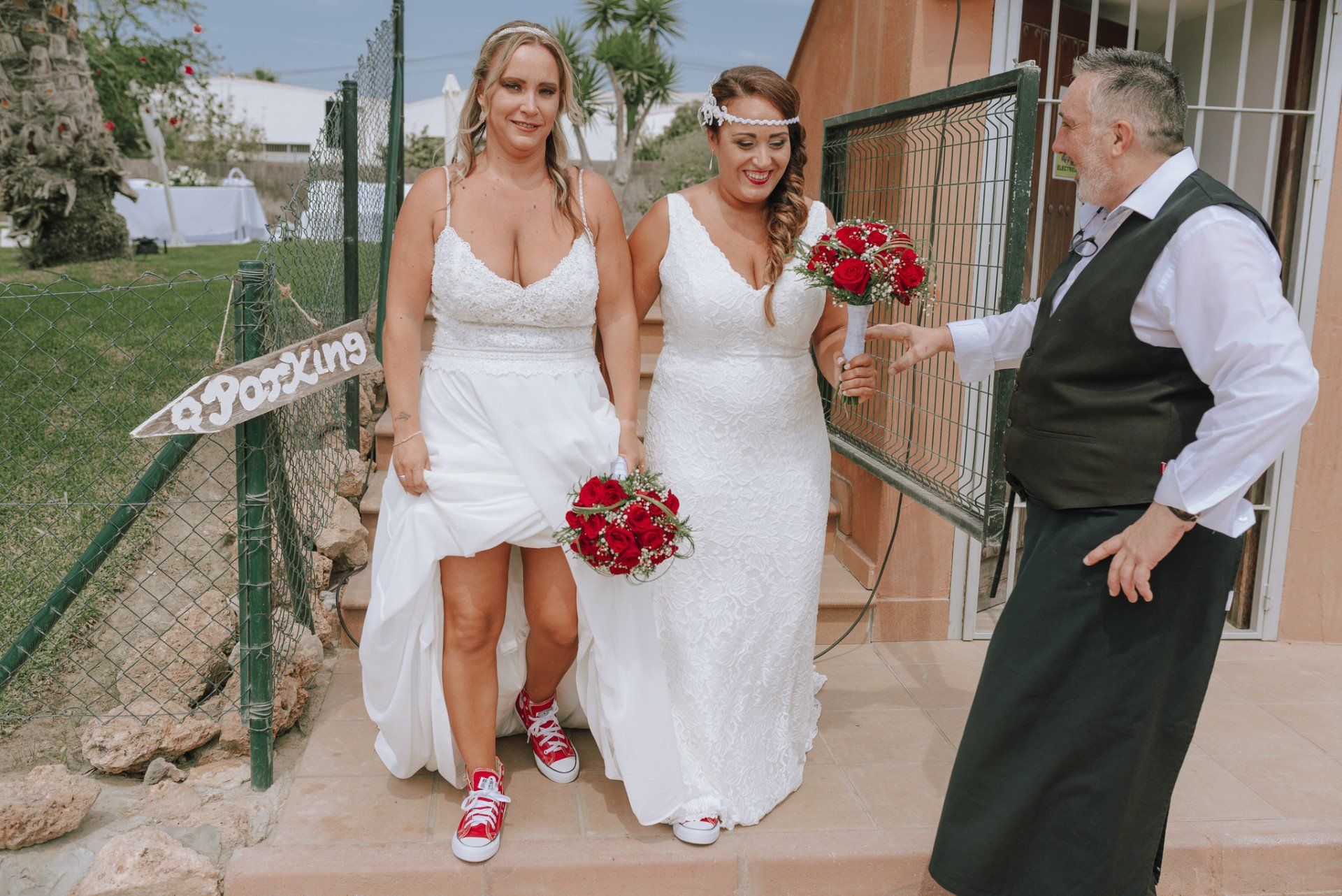 Diese Mädchen, verrückt wie sie selbst, waren so freundlich, mich an einer beispiellosen Party teilnehmen zu lassen: ihrer Hochzeit. Die dort versammelte Gruppe zeichnete sich durch ihre Lebensfreude und den Zusammenhalt aller aus. Eine informelle Hochzeit, bei der es so unterschiedliche Momente gab wie die Ankunft von Almu mit der Pferdekutsche, viel Musik, Cadiz-Airs mit der Truppe „er Pichi de Cai“, Saxophonist, ... einige Tränen bei der Zeremonie und viele Gelächter, besonders auf der Party, viel Tanzen und viele verrückte Leute... einige haben sogar den Pool mit Kleidung und allem ausprobiert... suchen Sie nach Bildern, die nicht verschwendet werden.