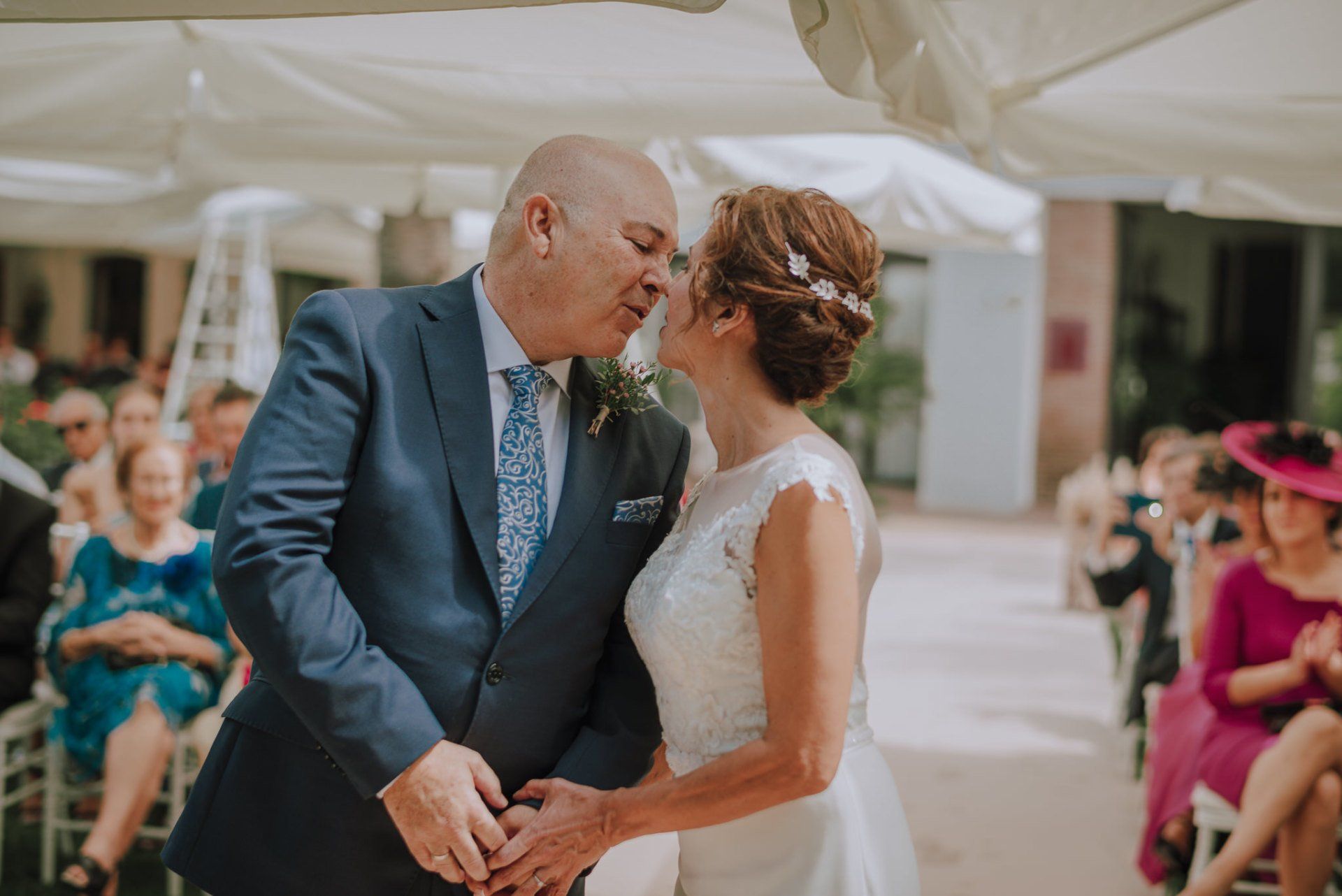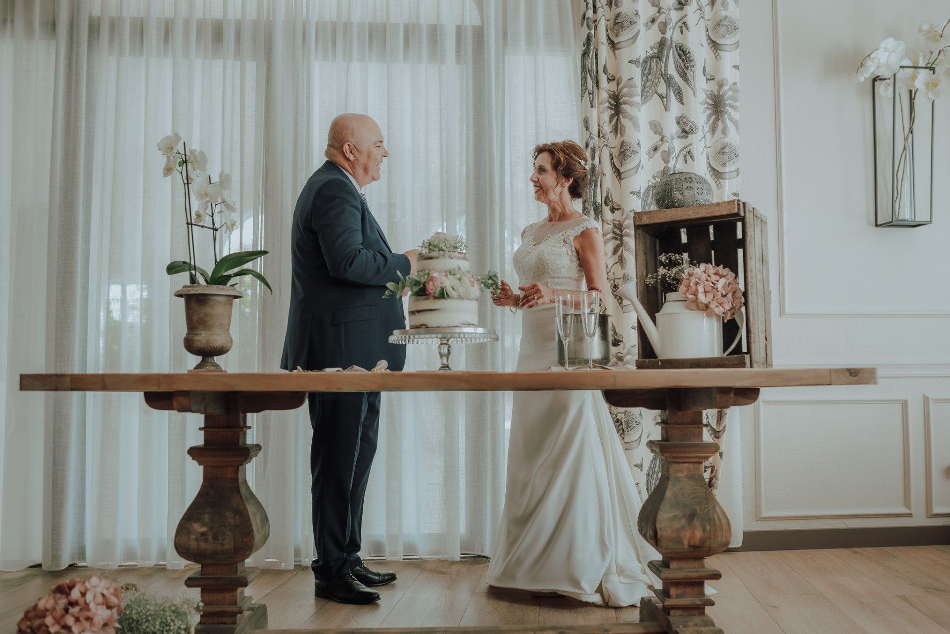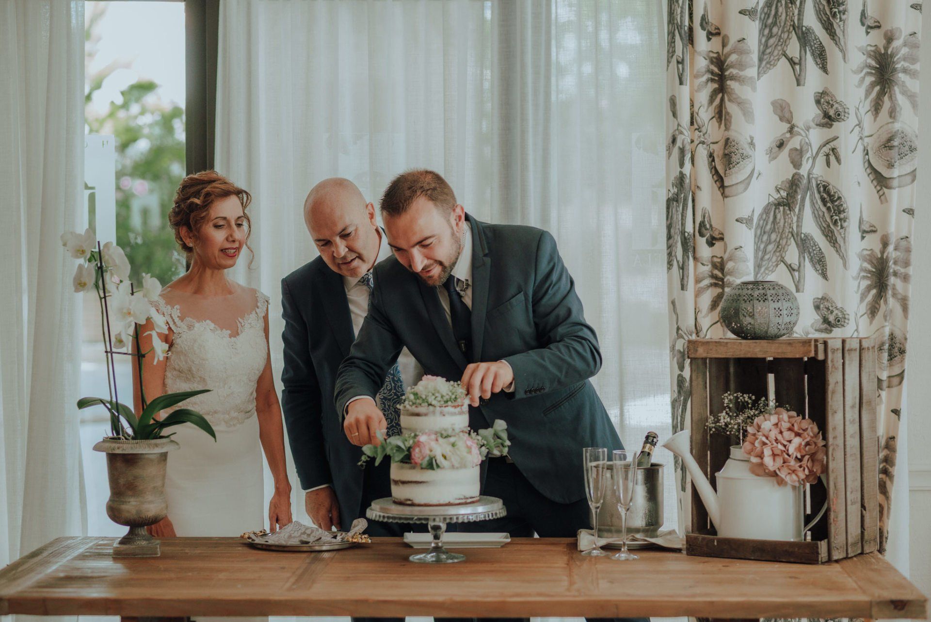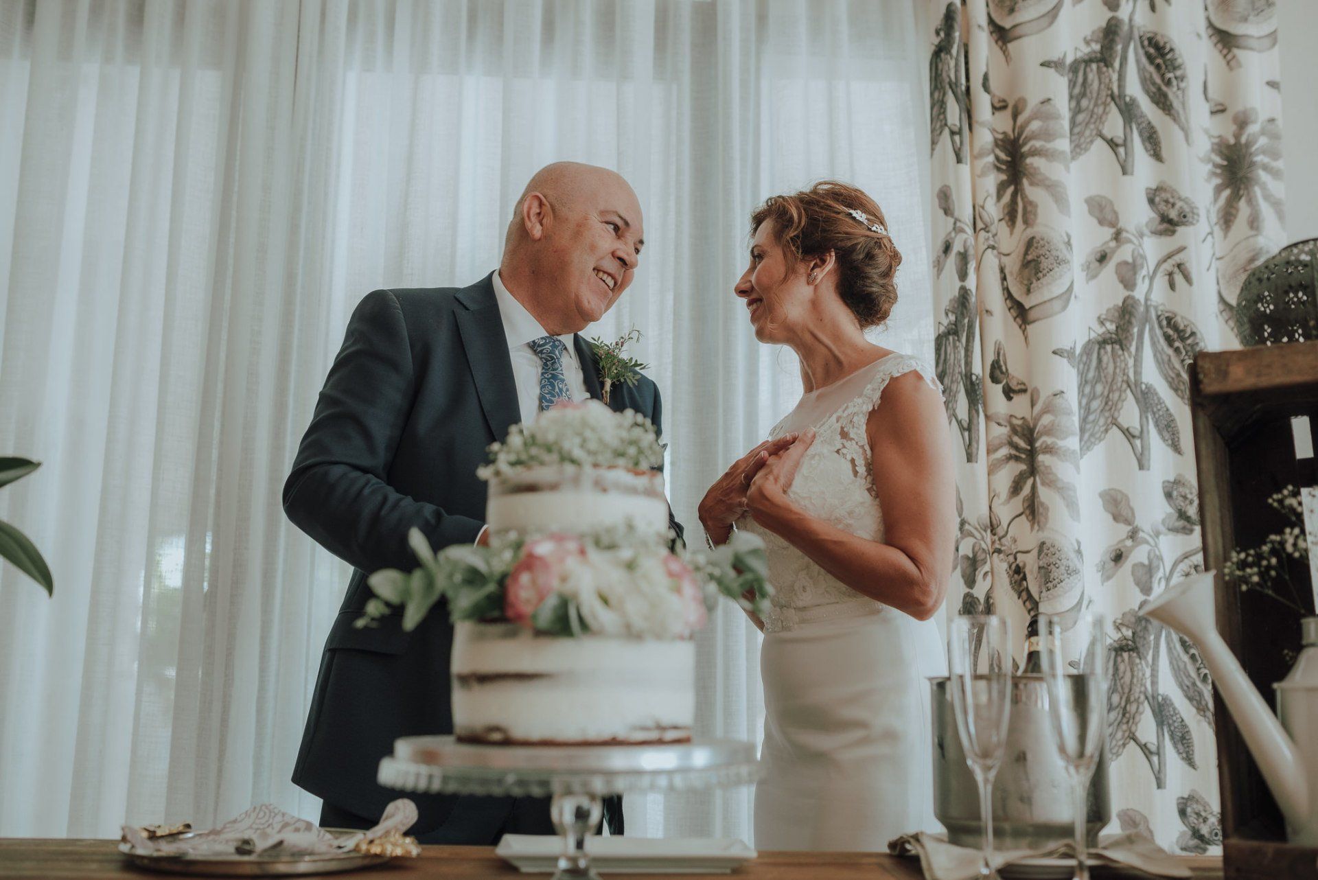 I was amazed by the welcome of this couple and their family and friends. A very easy wedding, with just over 50 guests and in a beautiful place in the Axarquía region of Malaga: La Viñuela. Charo and Paco are a couple that is a bit more mature than the average couple, but with a spirit, affection and a very special sweetness with everyone present and, of course, with me, which is very much appreciated. At first it was planned as an ultra-simple wedding; they didn't even want photos of the preparations, but at the last minute I was able to convince them of the importance of these moments in our photography when it comes to telling the story of that day. So a little while before leaving for the hotel I stopped by their house to take some photos of Charo's preparations. These are unrepeatable moments with her best friends that I couldn't miss. Paco was waiting for me at the hotel and we were barely able to take a few photos. In any case, the day was full of moments and powerful sunlight in a beautiful Andalusian-style setting with well-kept garden areas that helped us a lot. The hotel service was impeccable... and the photos were beautiful.