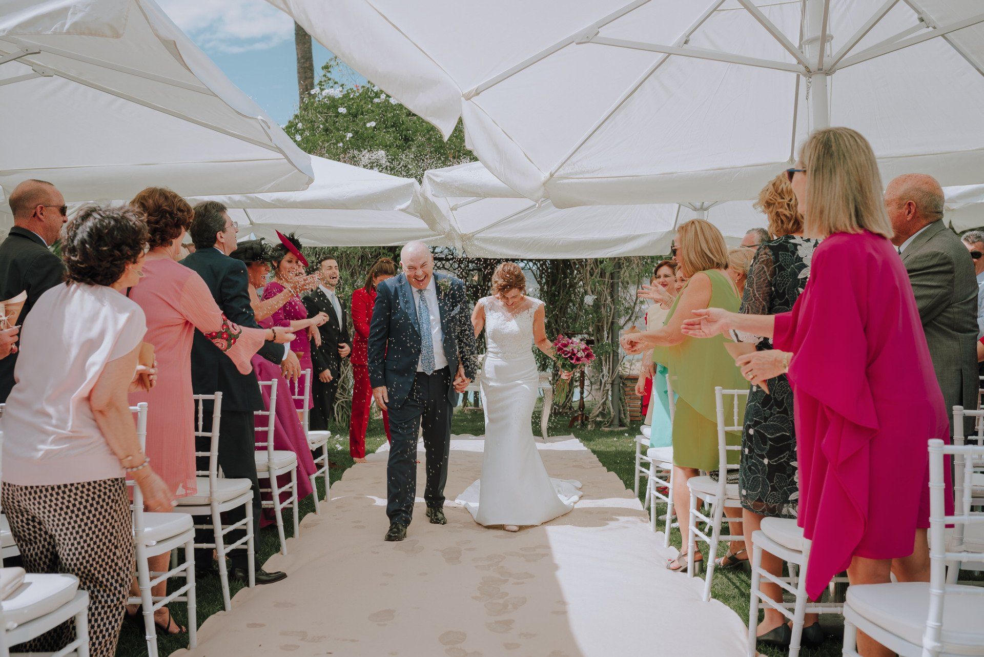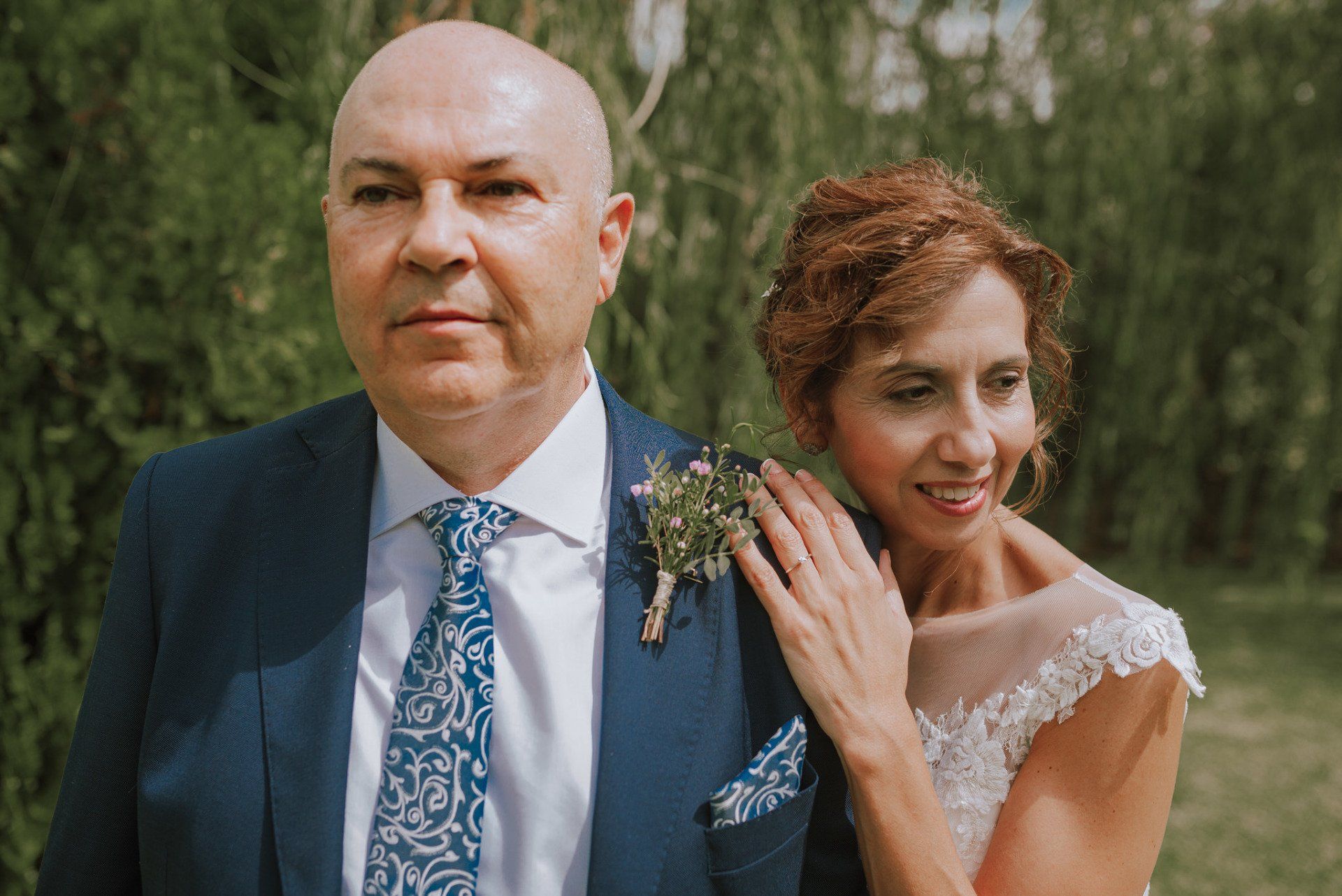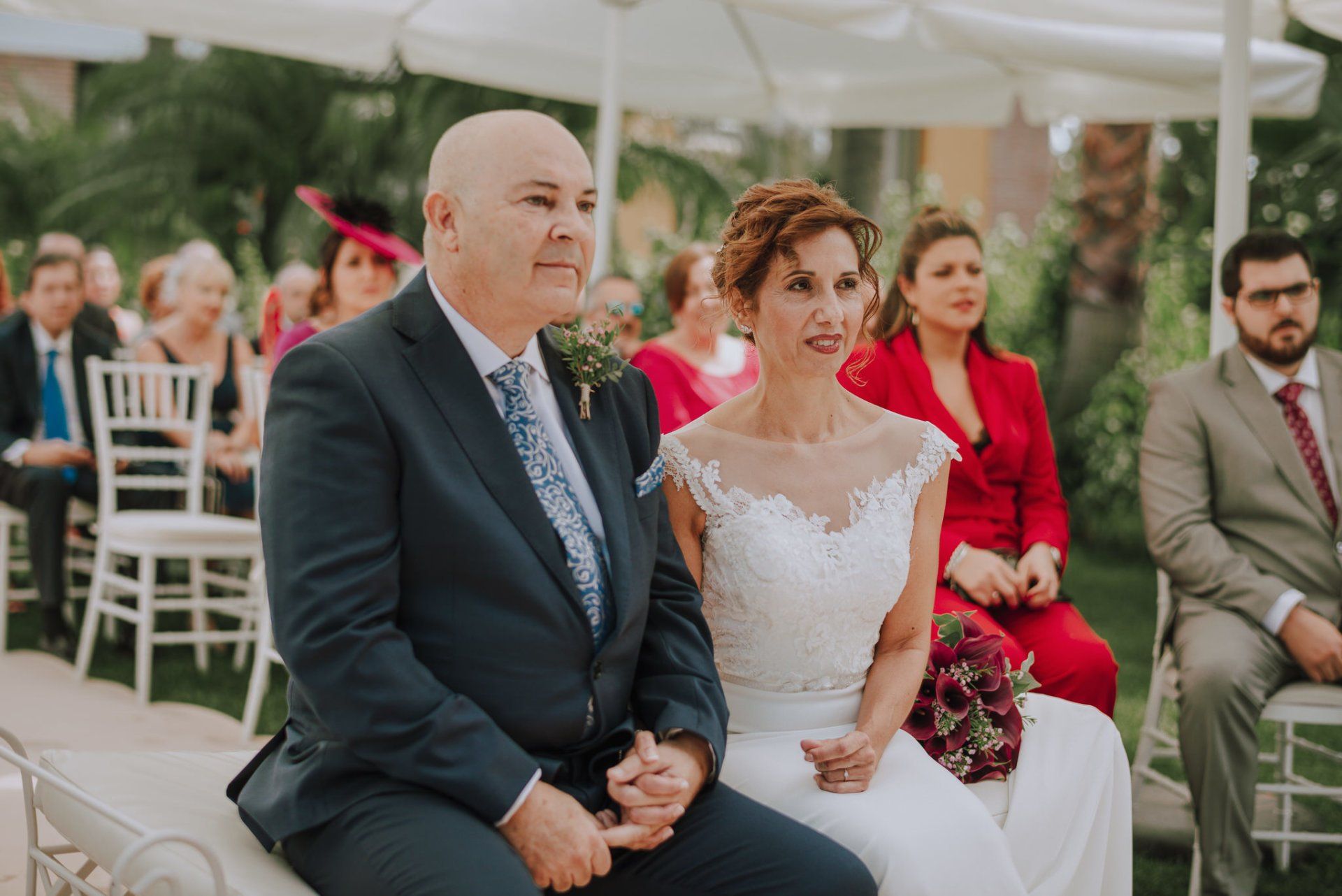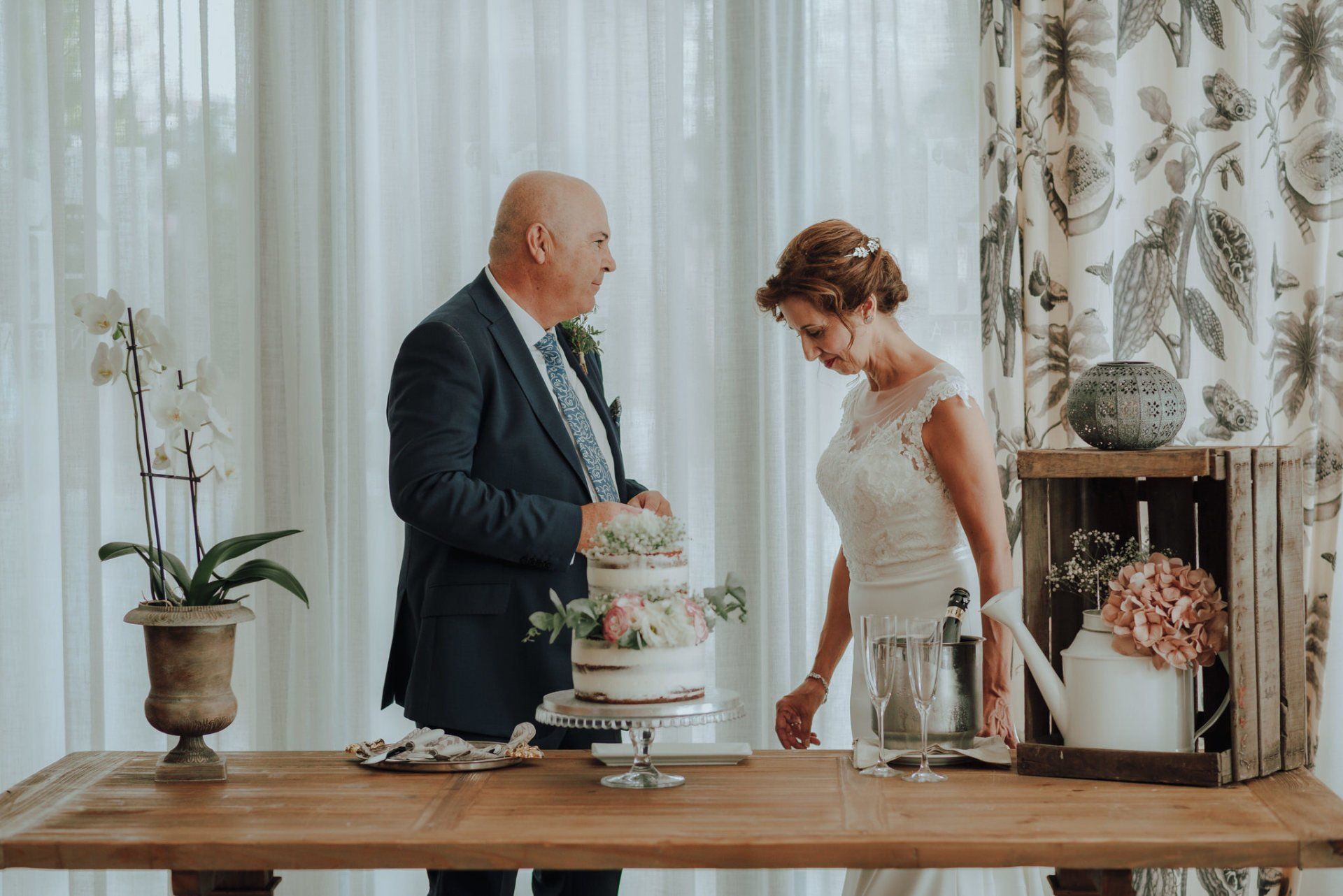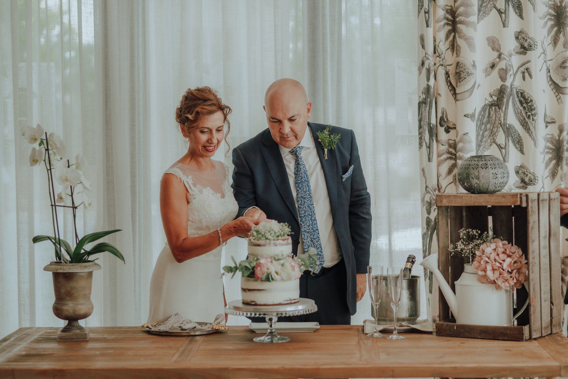 I was amazed by the welcome of this couple and their family and friends. A very easy wedding, with just over 50 guests and in a beautiful place in the Axarquía region of Malaga: La Viñuela. Charo and Paco are a couple that is a bit more mature than the average couple, but with a spirit, affection and a very special sweetness with everyone present and, of course, with me, which is very much appreciated. At first it was planned as an ultra-simple wedding; they didn't even want photos of the preparations, but at the last minute I was able to convince them of the importance of these moments in our photography when it comes to telling the story of that day. So a little while before leaving for the hotel I stopped by their house to take some photos of Charo's preparations. These are unrepeatable moments with her best friends that I couldn't miss. Paco was waiting for me at the hotel and we were barely able to take a few photos. In any case, the day was full of moments and powerful sunlight in a beautiful Andalusian-style setting with well-kept garden areas that helped us a lot. The hotel service was impeccable... and the photos were beautiful.