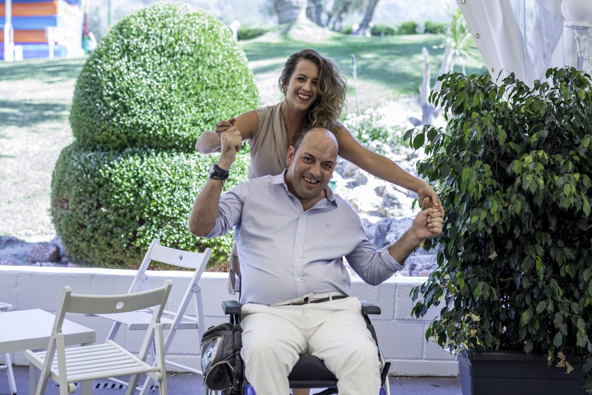 A very simple and lively wedding with a group of friends who gave it their all during the cocktail, lunch and open bar, without stopping for a moment to dance and take photos. In Alhaurín, Finca Chalet El Rocío is a very comfortable and well-attended celebration venue, with experience in celebrations and where the times are very well controlled. It is comfortable to work here.