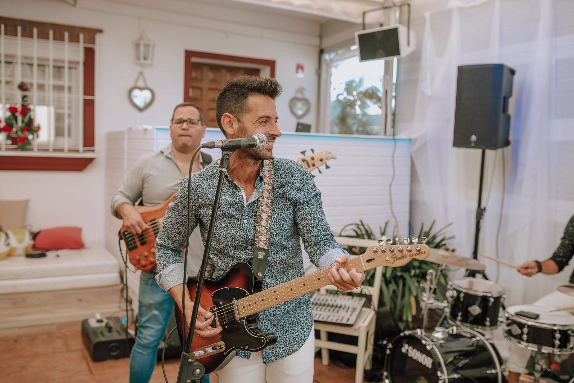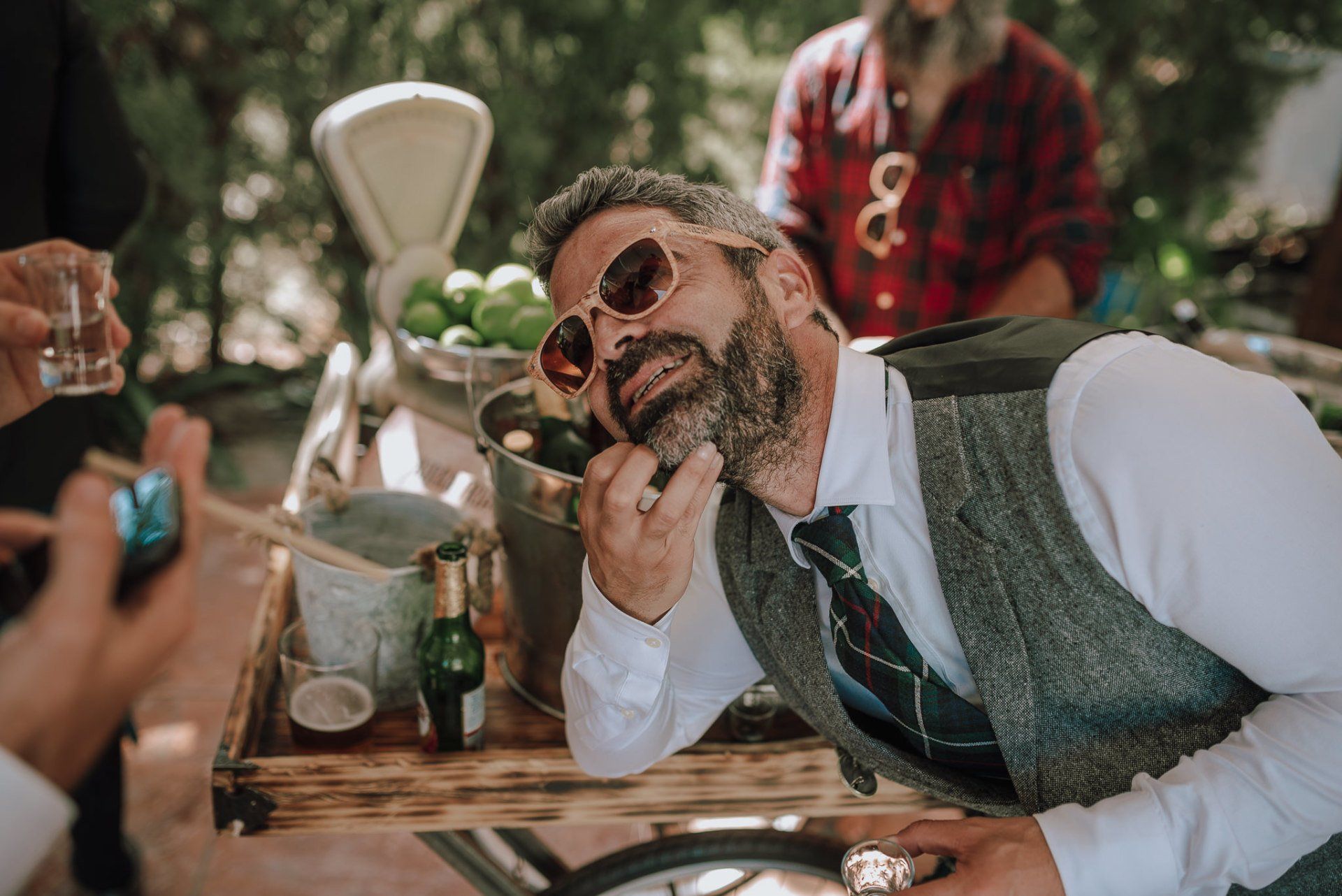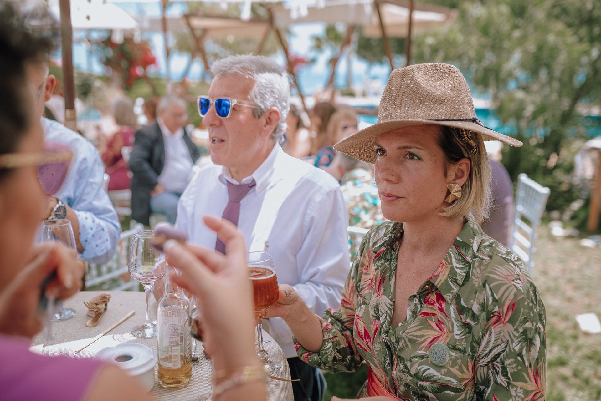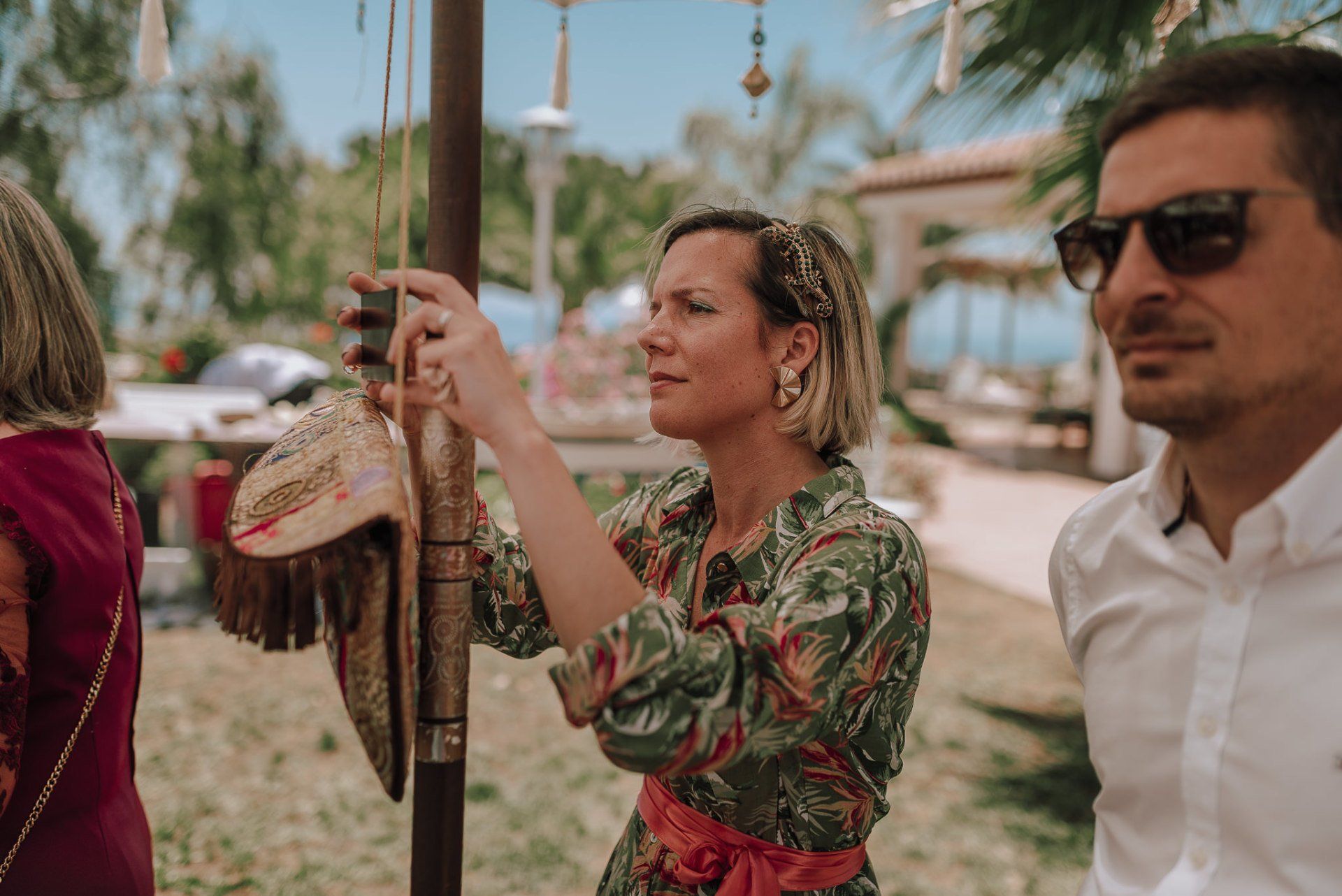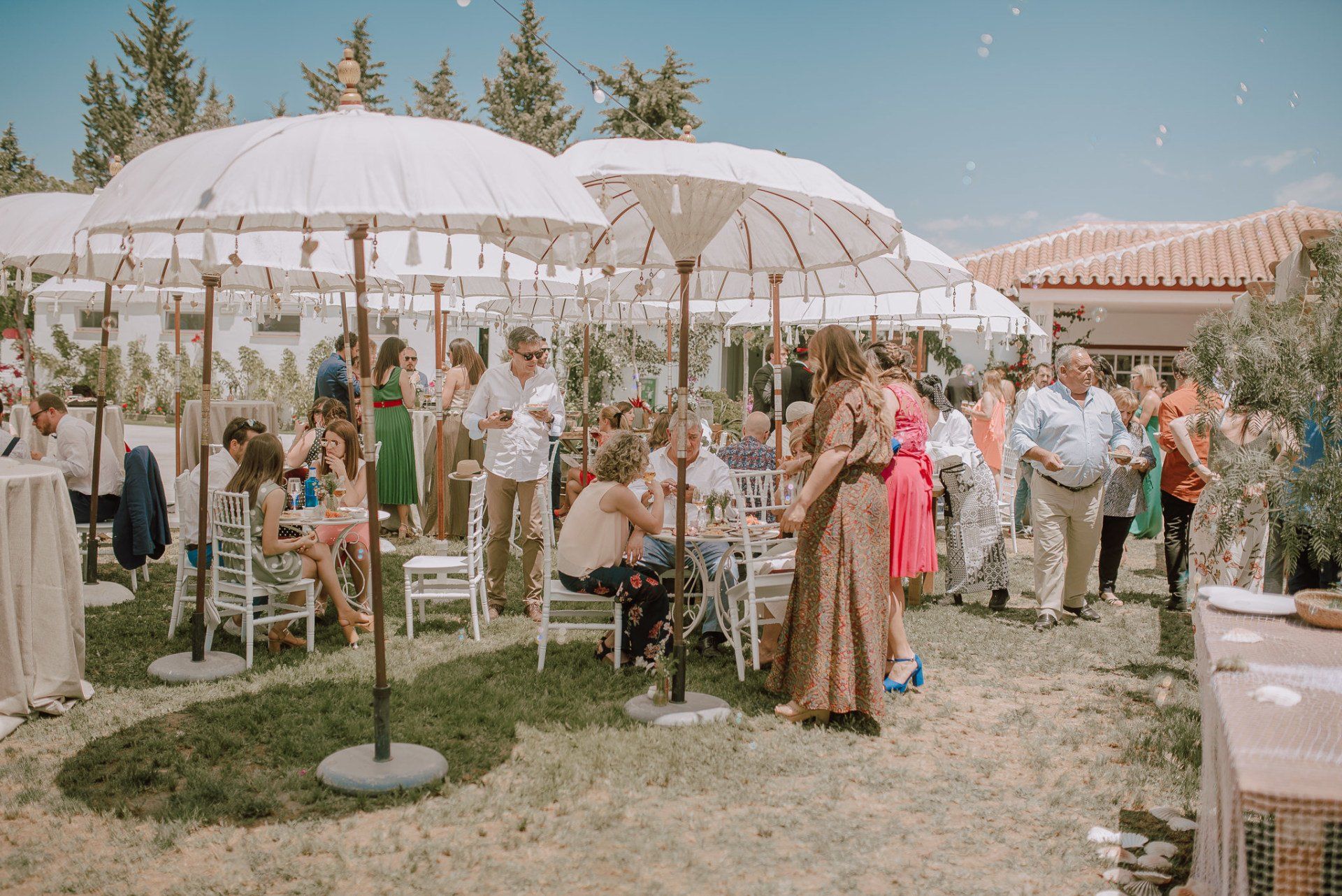 (ver web), regentada por ALMA Catering (ver web), es un lugar muy adecuado para realizar todo el evento de la boda de principio a fin. Cuenta con dos apartamentos (con una piscina no utilizable por los asistentes -una pena-) donde los novios pueden quedarse y prepararse par la ceremonia, con lo que se facilita mucho el tema desplazamientos y nos hace el trabajo más fácil a los fotógrafos. La ceremonia, en el lateral de la finca, bajo enormes árboles y con unas generosas vistas al mar, una decoración minimalista y algo rústica, y la zona de comida delante de la piscina en una amplia zona de césped y en plan informal, con estilo showcooking y estaciones de cocinas del mundo: mexicana, marroquí, japones, thai y hasta unos espetos de sardinas malagueñas para unos invitados de varios países y varias zonas de la geografía española.