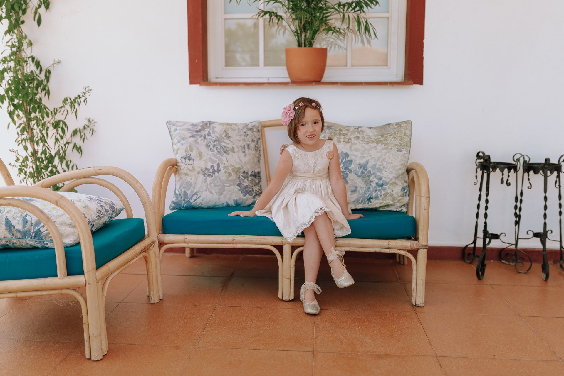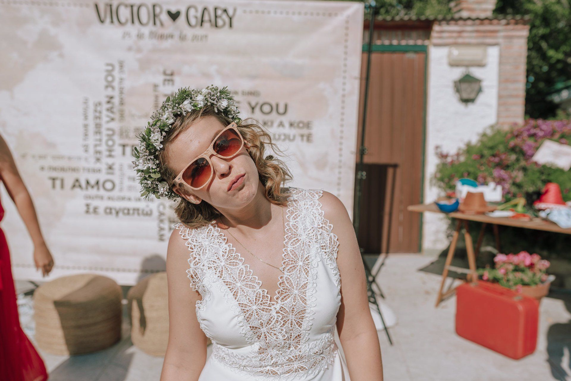 Las bodas en Málaga suelen estar bendecidas con un tiempo radiante y un sol de justicia a veces. En nuestro caso, con Sabri y Tania, el día comenzó bastante nublado y a primera hora de la tarde incluso con un fuerte chaparrón mientras las novias estaban en los momentos previos. Los preparativos los estábamos viviendo con cierta preocupación dado que la ceremonia y el cóctel estaban previsto hacerse en el exterior. A pesar de eso, en el momento justo de empezar la ceremonia, la lluvia acababa de parar y nos dejaba un cielo de lo más interesante para poder disfrutar de una boda preciosa. Nos encantan cuando las bodas se desarrollan completamente en el mismo lugar , cuando l@s novi@s se visten en la misma finca u hotel y para la ceremonia y celebración no tenemos que desplazarnos. Esto te da tranquilidad y tener más tiempo para emplear en hacer fotos. Tania usaba una habitación grande en el edificio de la finca y Sabrina en una caravana de madera que se encontraba al final del jardín para evitar que se vieran antes de la celebración. En esta boda hacíamos equipo con el gran compañero Fran Santander y decidimos estar cada uno con los preparativos de cada una de las novias y no agobiarlas mucho, que ya bastante tenían con estar pendientes de la climatología. Yo con Tania, en la habitación de la finca, una habitación enorme en la que no paraban de entrar familiares y amigos a felicitarla y hacerla reír, a ayudarla con algunos detalles. Veamos algunas imágenes de estos momentos.