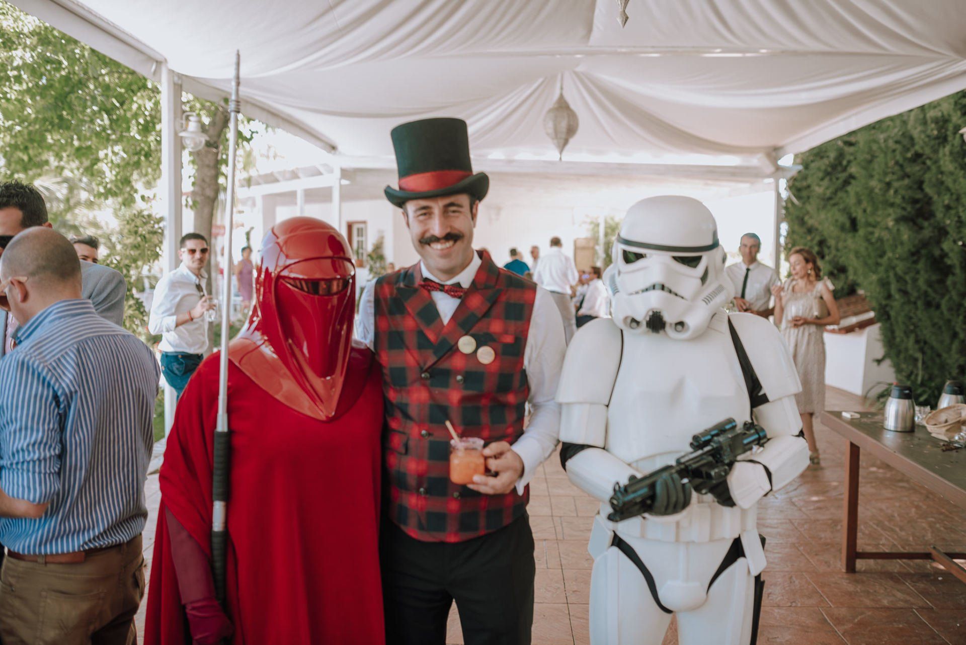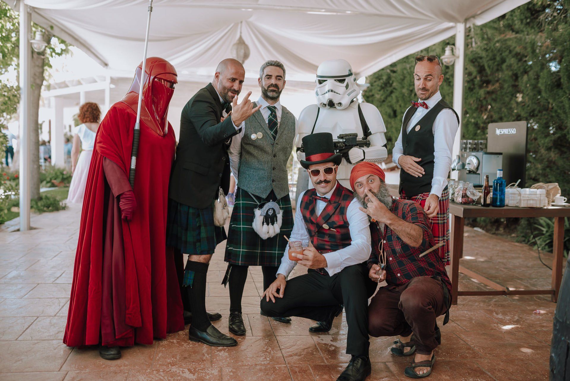 Lo mejor de los detalles la infinidad de referencias frikis, sobre todo de Bola de Dragón -predilección de Victor- y Star Wars, con algunos invitados de la Legión 101, algunas faldas escocesas de los amigos de la infancia del novio y el cierre de fiesta con el grupo de versiones I-Pop (ver facebook del grupo) con el gran Pepe Cotta a la cabeza. La diversión... mas que garantizada.