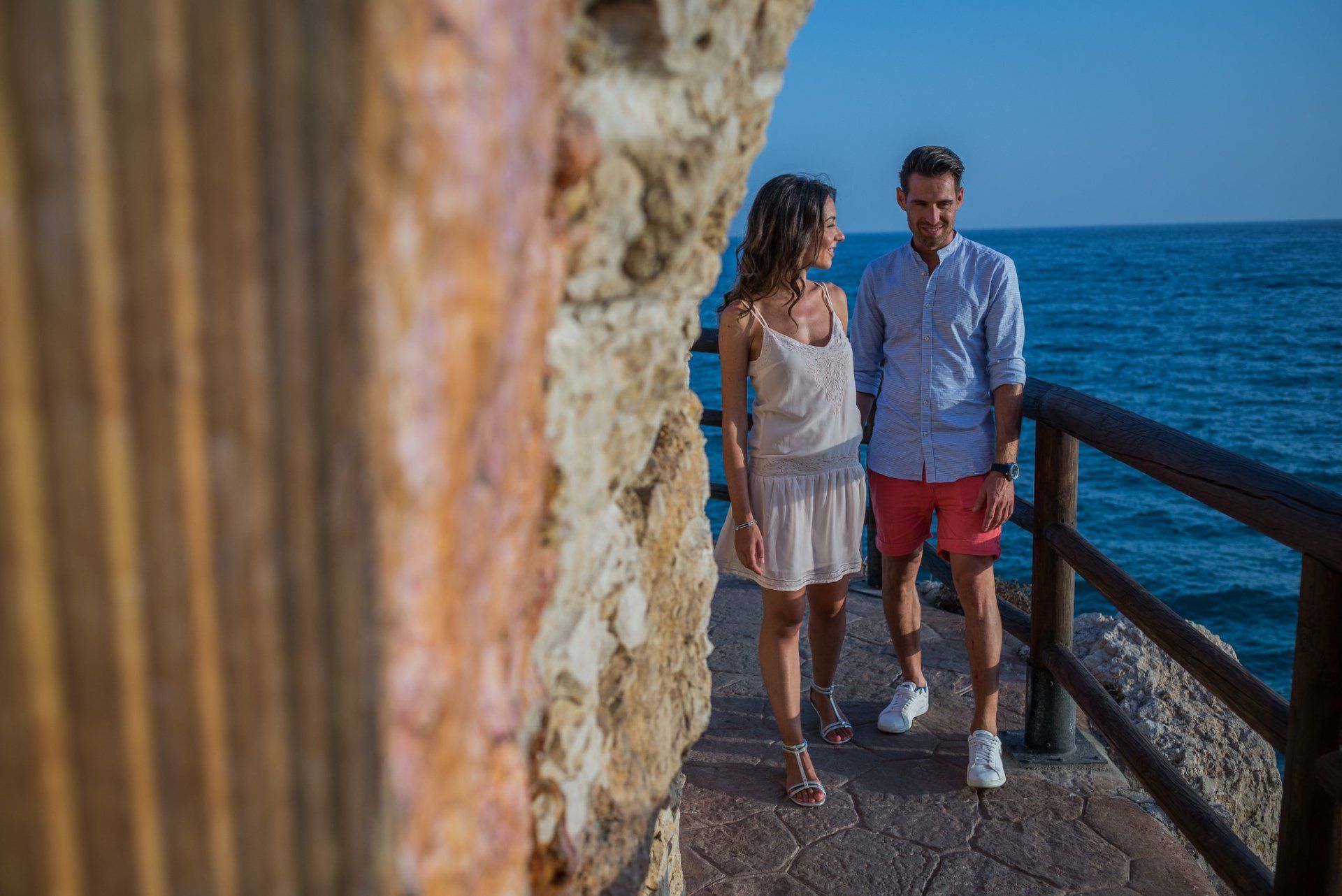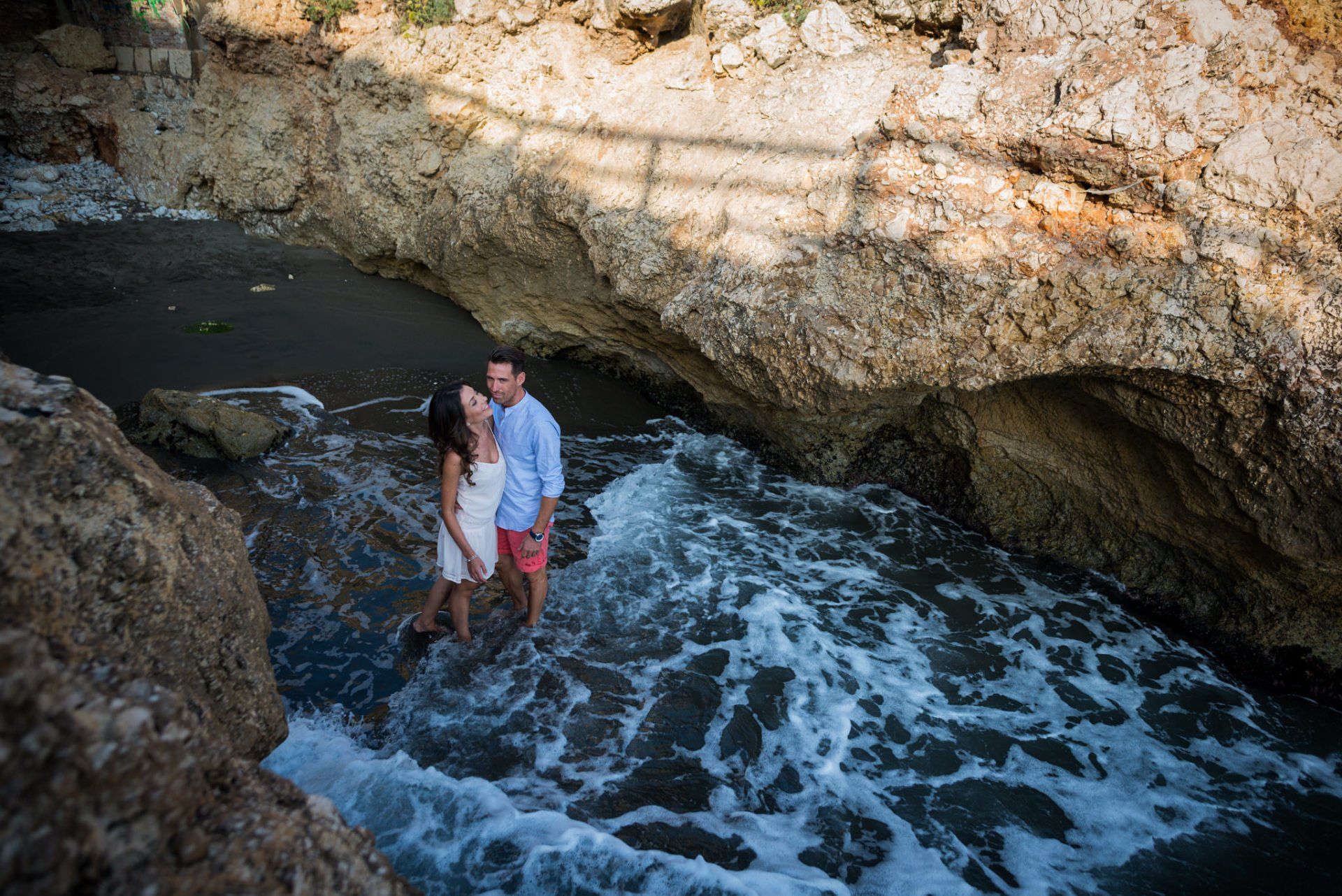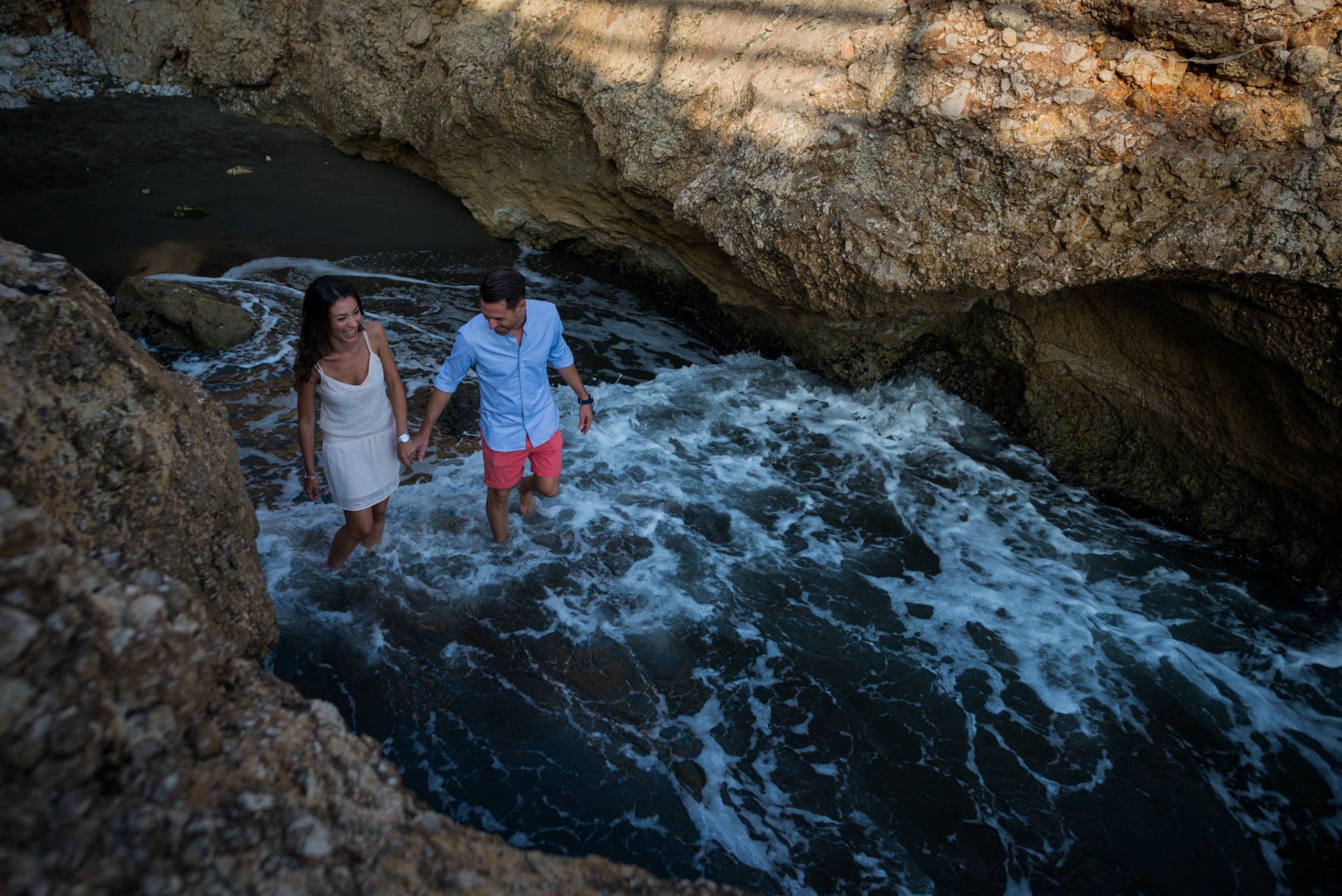 en un tranquilo paseo, aprovechando los interiores con sus claroscuros, los caminos con barandillas de madera, las rocas que se forman en esa zona,... En un momento se nos ocurrió bajar a una pequeñísima cala, haciendo algo de escalada, donde conseguimos unas fotos bastante divertidas salpicando y corriendo en el agua y probando algo más angular que de costumbre.