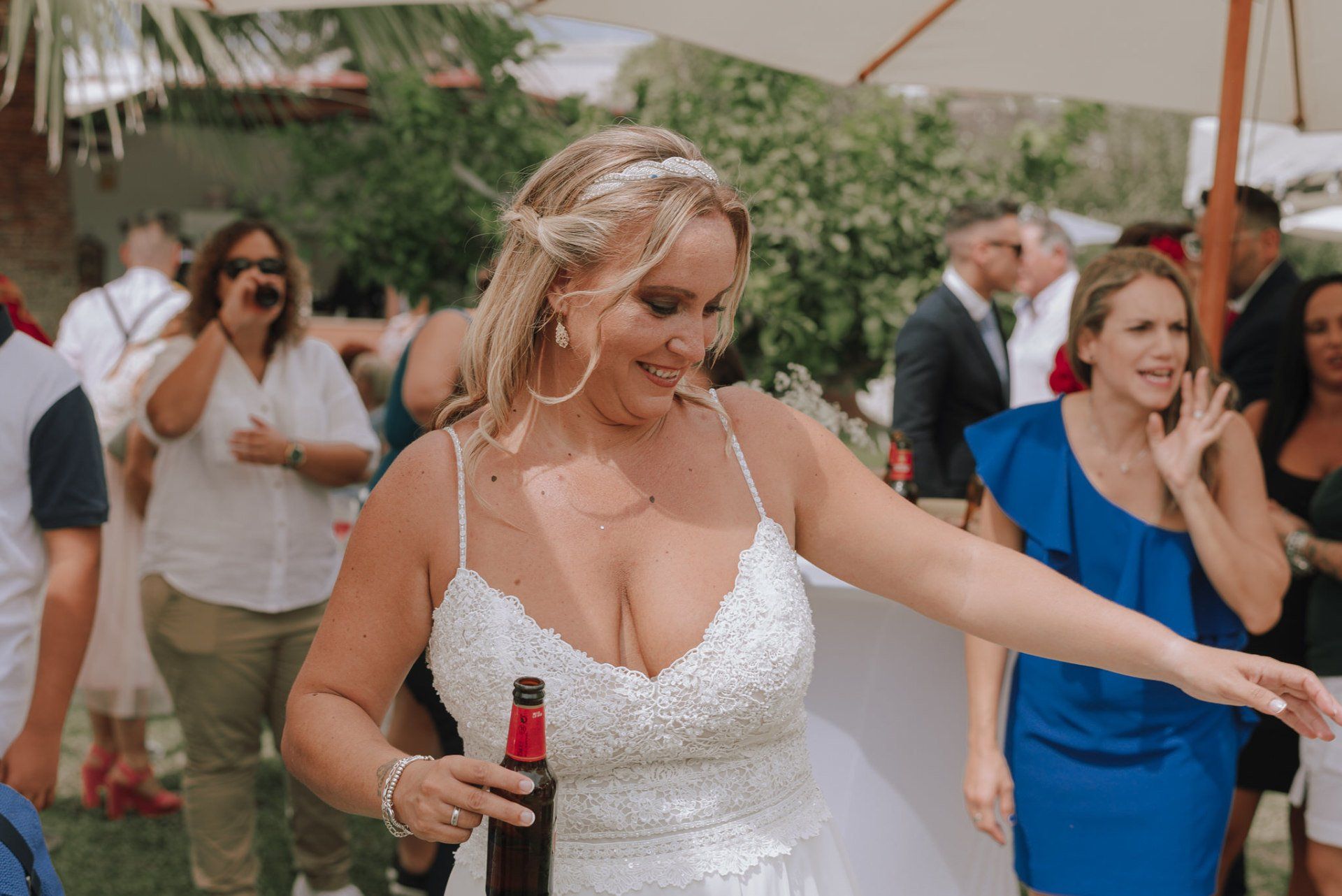 Diese Mädchen, verrückt wie sie selbst, waren so freundlich, mich an einer beispiellosen Party teilnehmen zu lassen: ihrer Hochzeit. Die dort versammelte Gruppe zeichnete sich durch ihre Lebensfreude und den Zusammenhalt aller aus. Eine informelle Hochzeit, bei der es so unterschiedliche Momente gab wie die Ankunft von Almu mit der Pferdekutsche, viel Musik, Cadiz-Airs mit der Truppe „er Pichi de Cai“, Saxophonist, ... einige Tränen bei der Zeremonie und viele Gelächter, besonders auf der Party, viel Tanzen und viele verrückte Leute... einige haben sogar den Pool mit Kleidung und allem ausprobiert... suchen Sie nach Bildern, die nicht verschwendet werden.
